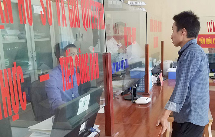 Người dân xã Mường Lói, huyện Ðiện Biên thực hiện các thủ tục hành chính tại bộ phận tiếp nhận và trả hồ sơ xã.