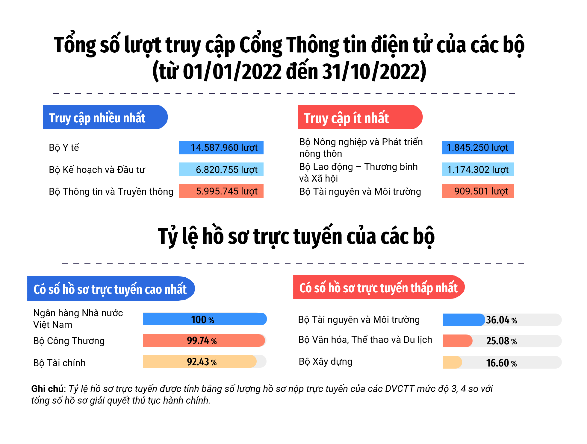 Tiếp nối Chuyên đề "Dịch vụ công trực tuyến", Chuyên đề tuần này tiếp tục điểm lại các số liệu nổi bật, từ đó nhìn nhận sự thay đổi sau khi các bộ, ngành, địa phương thực hiện để các đơn vị có căn cứ thúc đẩy hoàn thành các mục tiêu triển khai DVCTT năm 2022.