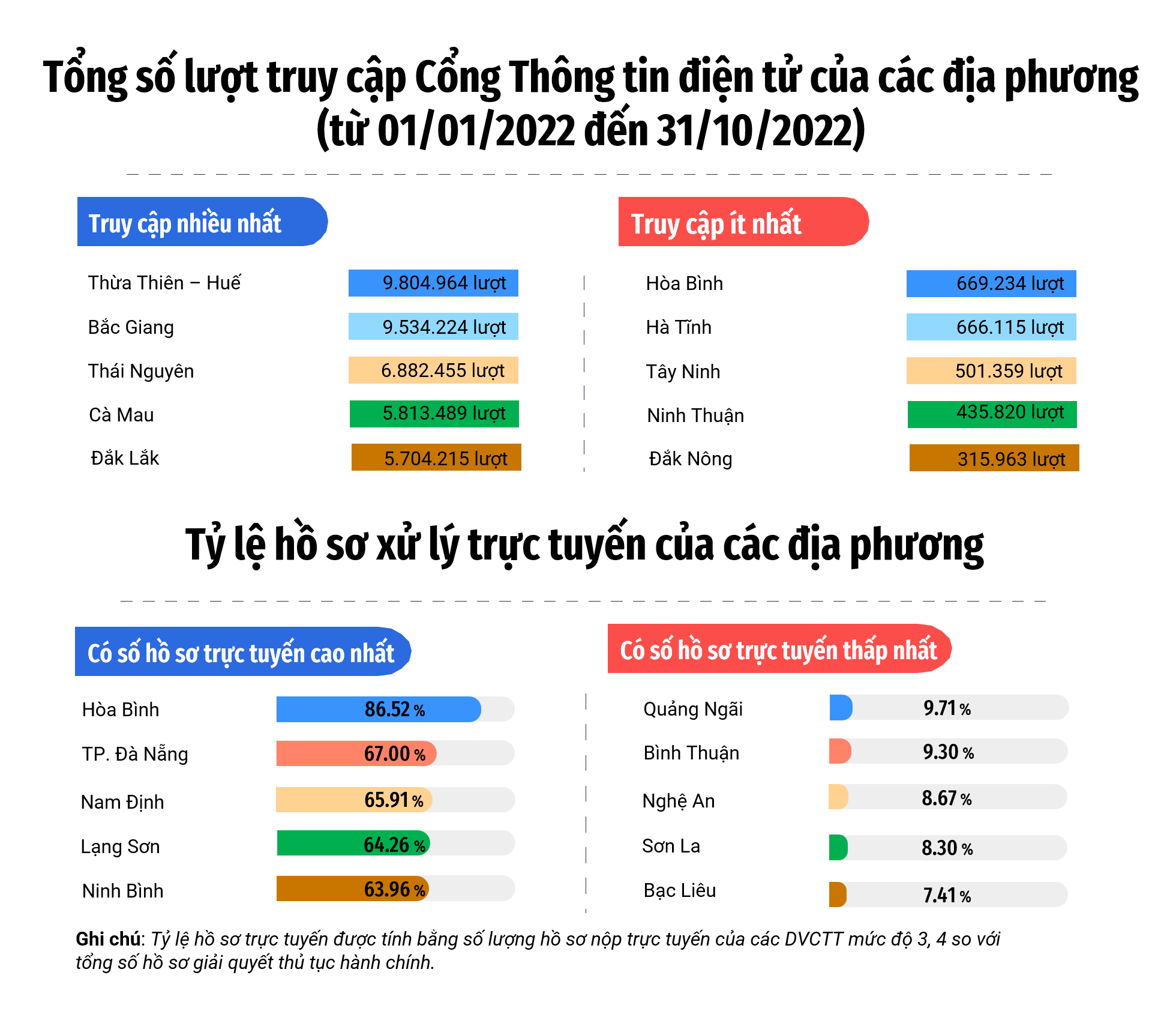 Ngày 28/9/2022, Liên Hợp Quốc công bố Báo cáo khảo sát xếp hạng mức độ phát triển Chính phủ điện tử của 193 quốc gia, vùng lãnh thổ trên toàn cầu. Trong đó, Chỉ số Dịch vụ trực tuyến của Việt Nam xếp thứ 76/193 quốc gia, tăng 5 bậc so với năm 2020.