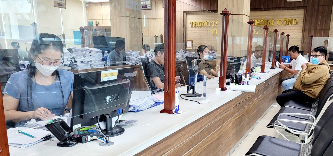 Người dân đến thực hiện các thủ tục cấp giấy chứng nhận quyền sử dụng đất tại Trung tâm Hành chính công TP. Huế