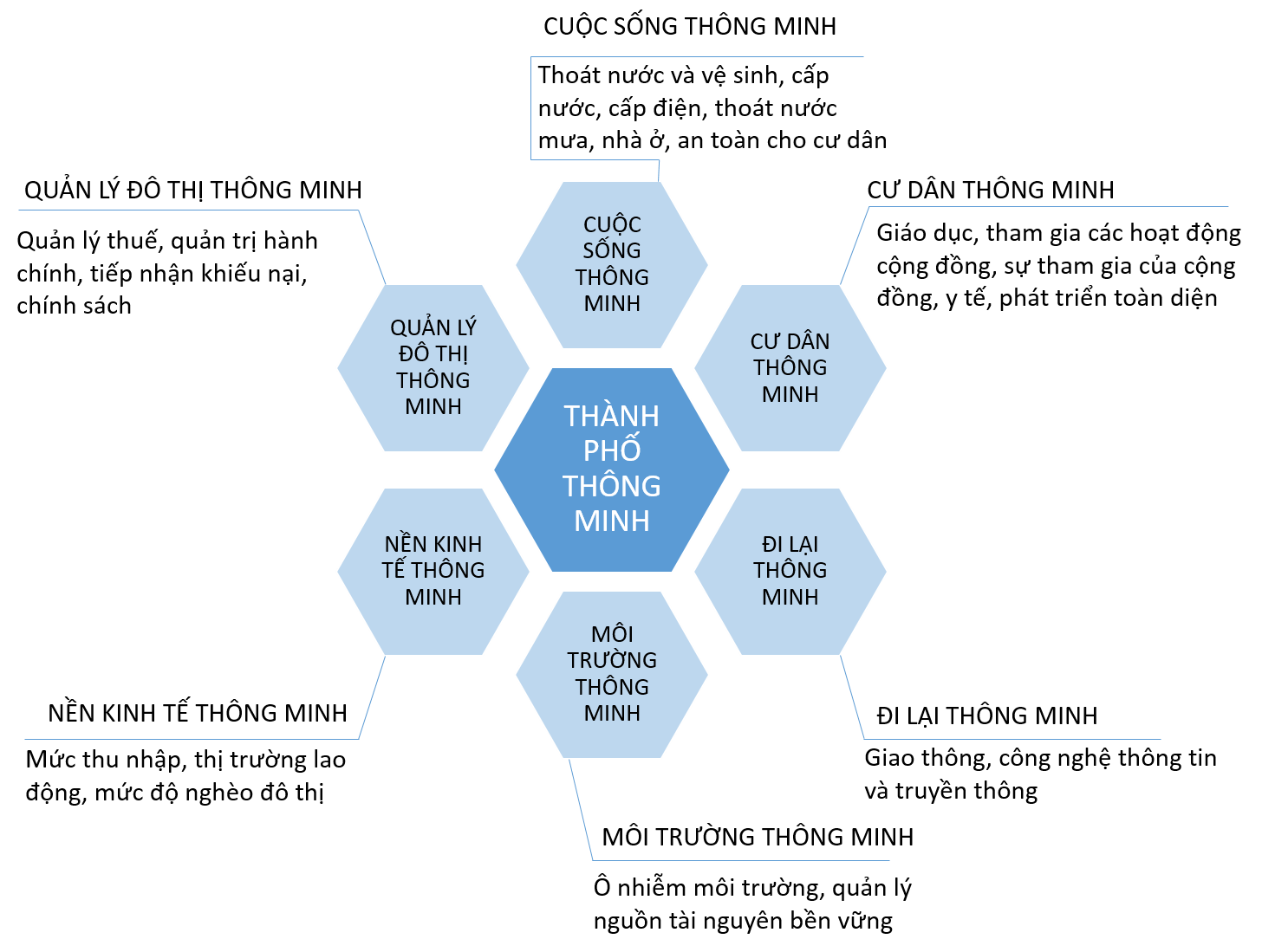 Các lĩnh vực cải thiện ở thành phố thông minh. (Nguồn: vẽ lại và tổng hợp từ smartcity.org)