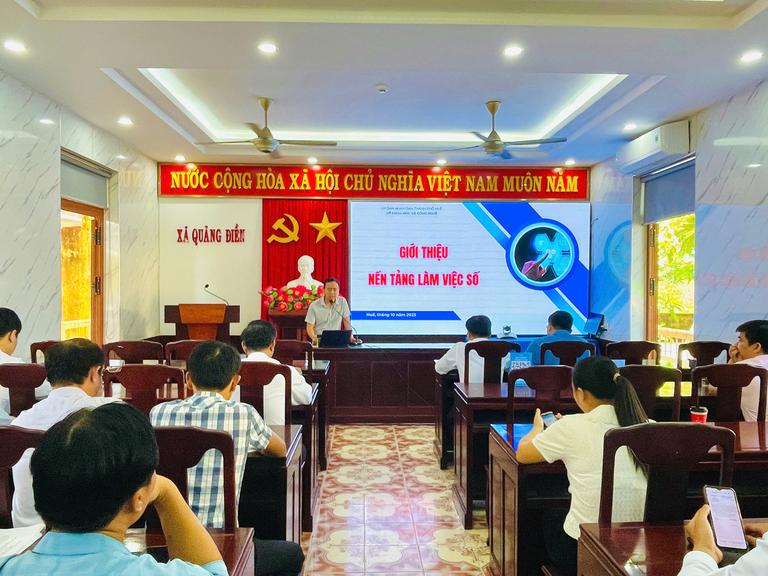 Môt số hình ảnh buổi tập huấn chuyển giao, vận hành các nền tảng số cho cán bộ, công chức, viên chức năm 2025 tại xã Quảng Điền.