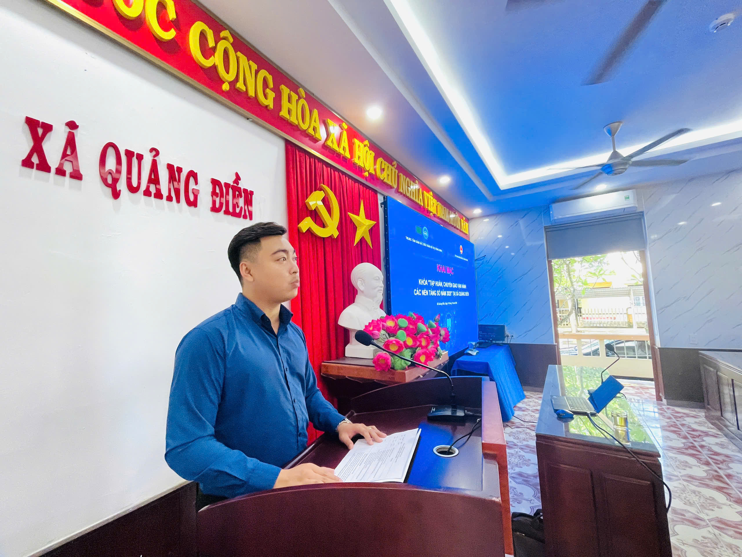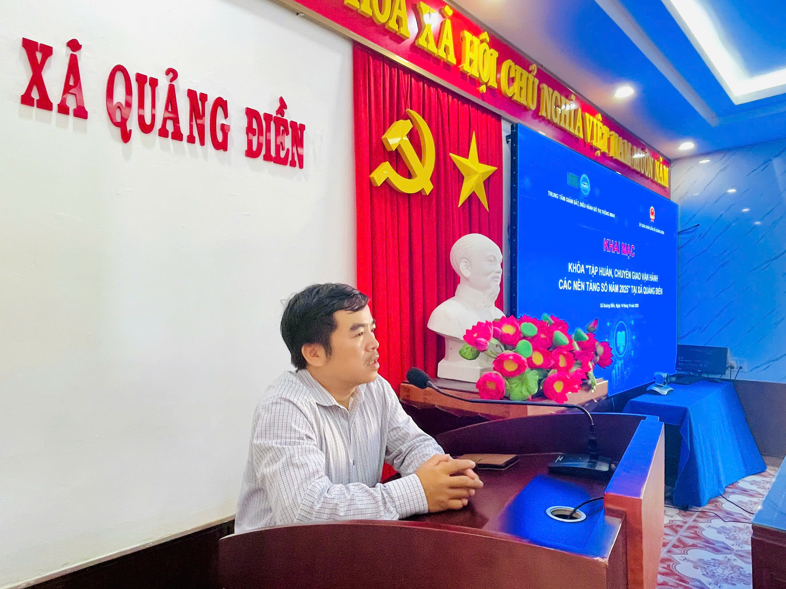 Tại buổi tập huấn đồng chí Hồ Văn An – Trưởng phòng HCDV HueIOC nêu rõ mục đích, yêu cầu và ý nghĩa của khóa học. Khóa học được tổ chức nhằm nâng cao kiến thức, kỹ năng số và năng lực ứng dụng công nghệ thông tin trong công việc, giúp cán bộ, công chức, viên chức thực hiện nhiệm vụ hiệu quả hơn trong thời kỳ chuyển đổi số. Đồng chí chân thành cảm ơn sự quan tâm, chỉ đạo sâu sát của lãnh đạo UBND xã Quảng Điền, cùng sự phối hợp chặt chẽ, tạo điều kiện thuận lợi của Phòng Văn hóa – Xã hội. Đồng chí cũng động viên các học viên phát huy tinh thần trách nhiệm, tích cực trao đổi, học hỏi để khóa học đạt kết quả cao nhất.