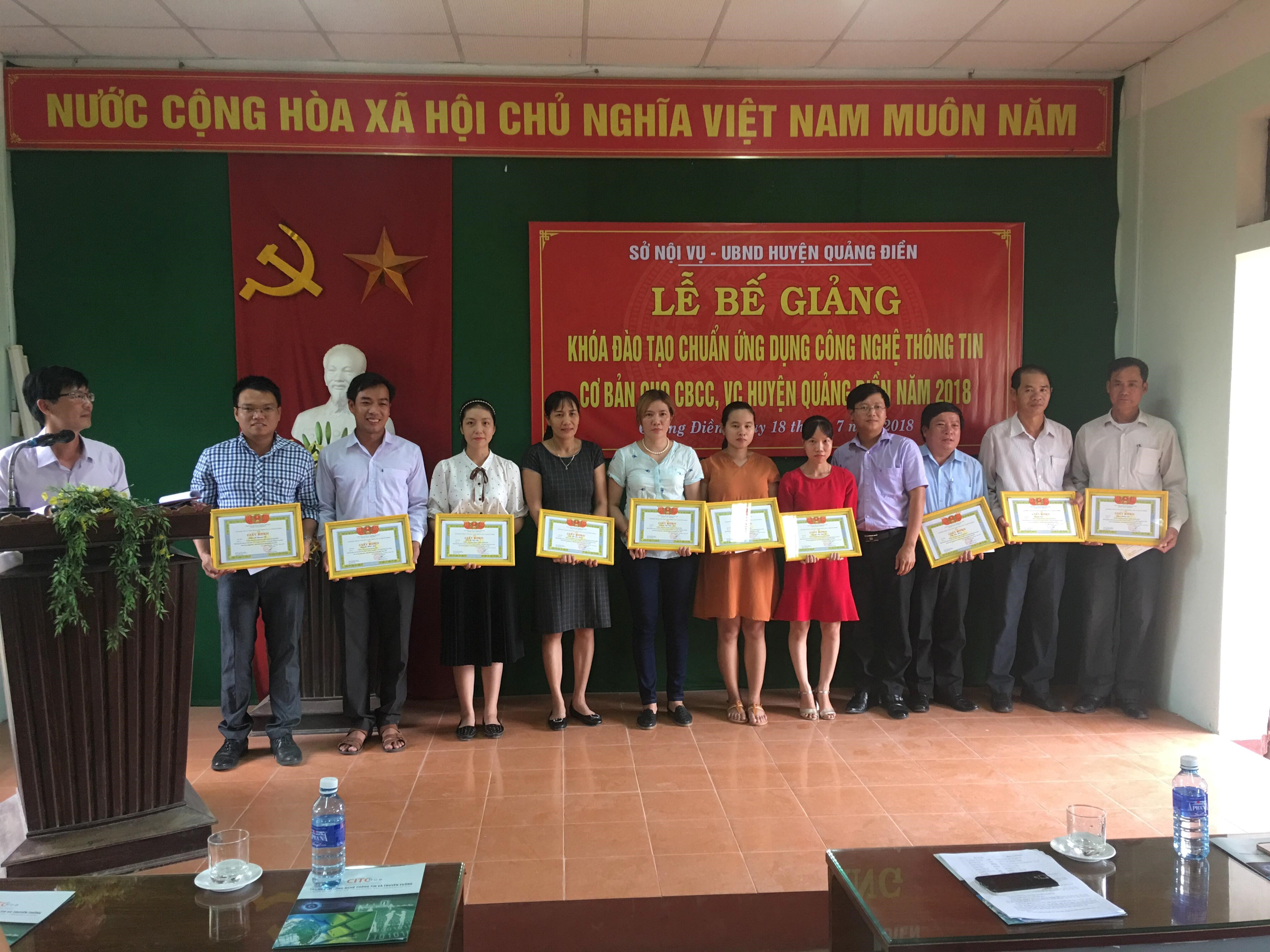 Khóa học “Chuẩn Ứng dụng công nghệ thông tin cơ bản” diễn ra trong gần 2 tháng cho 51 học viên là cán bộ, công chức, viên chức trên địa bàn huyện Quảng Điền năm 2018 đã kết thúc tốt đẹp và đạt được những kết quả đáng ghi nhận.