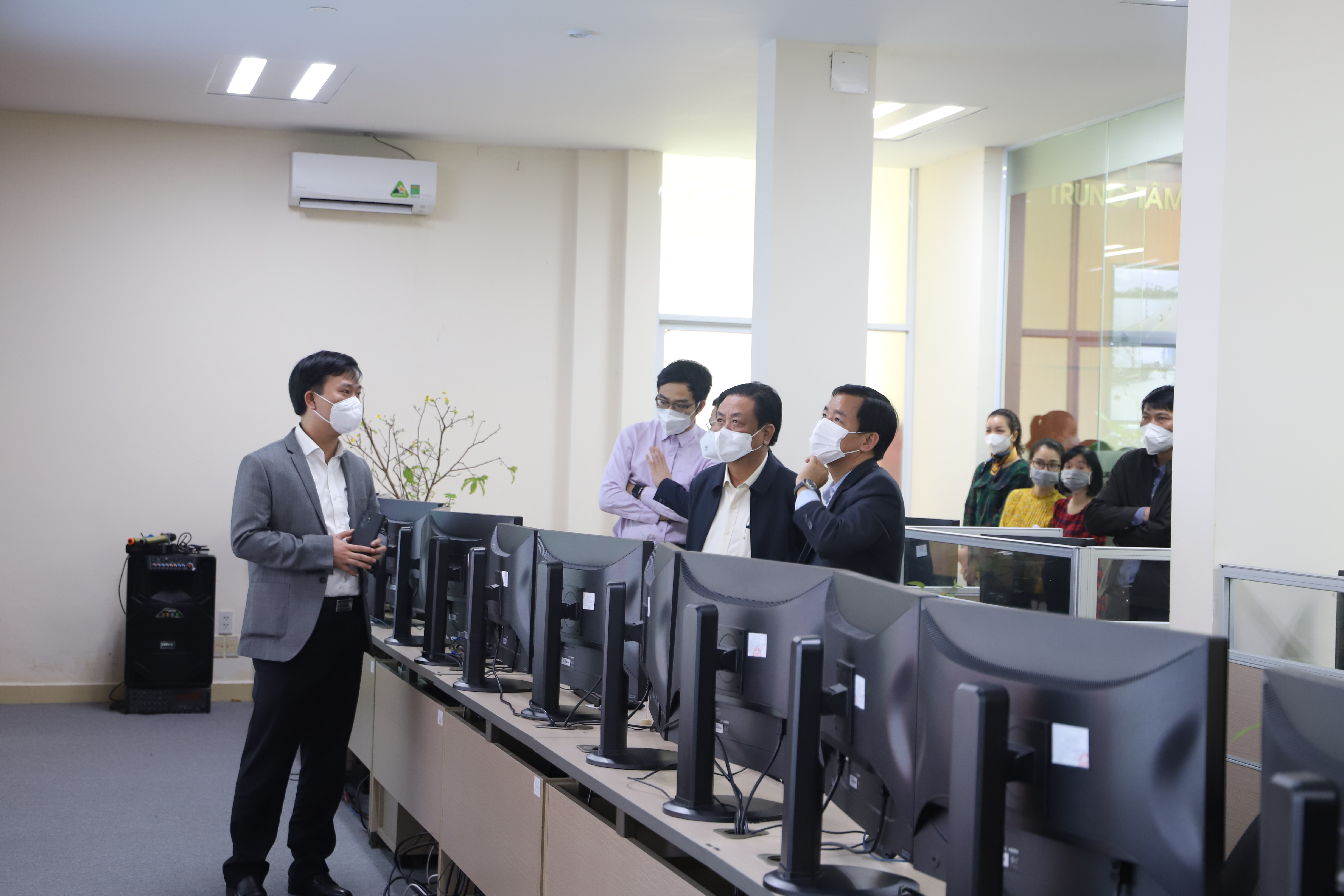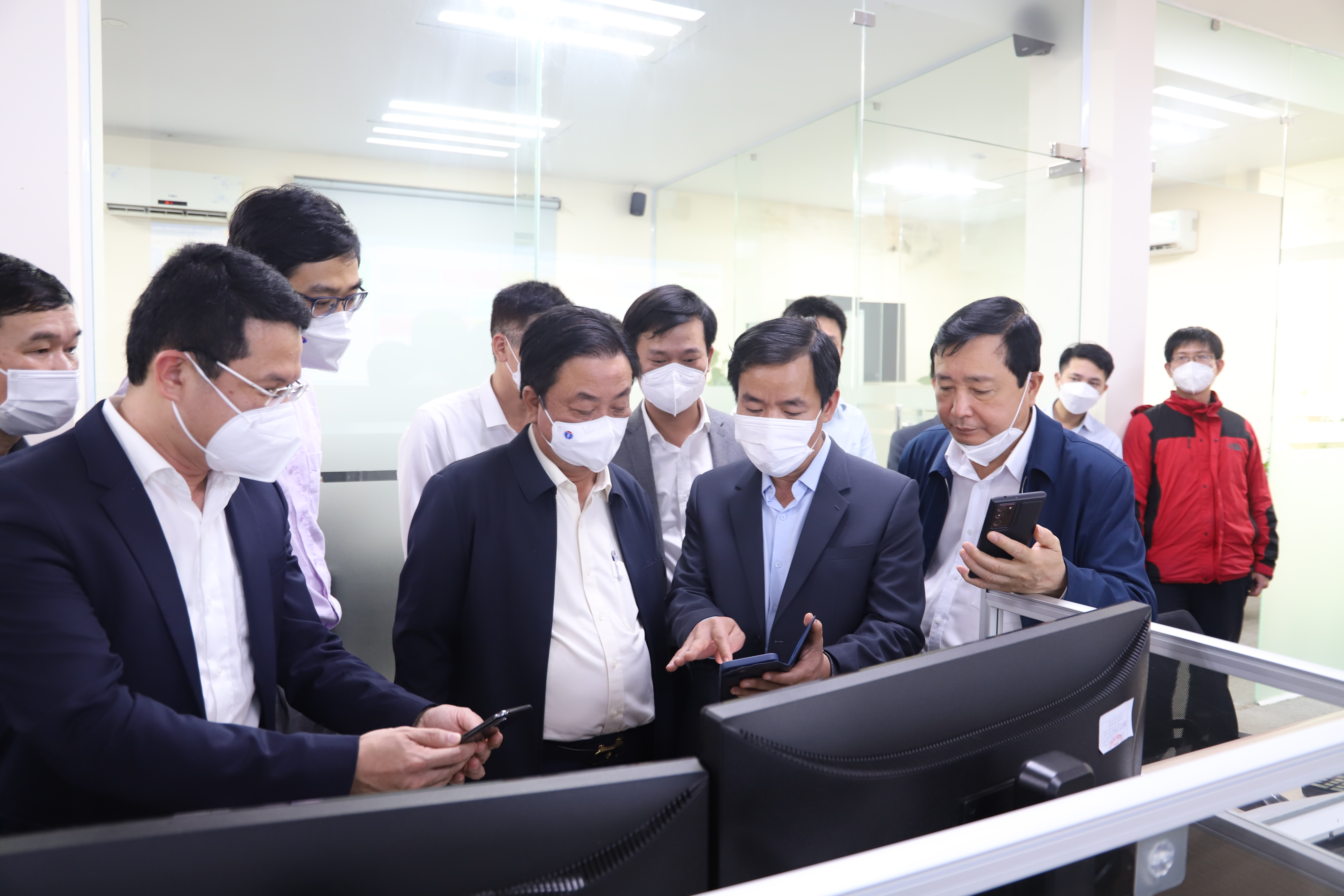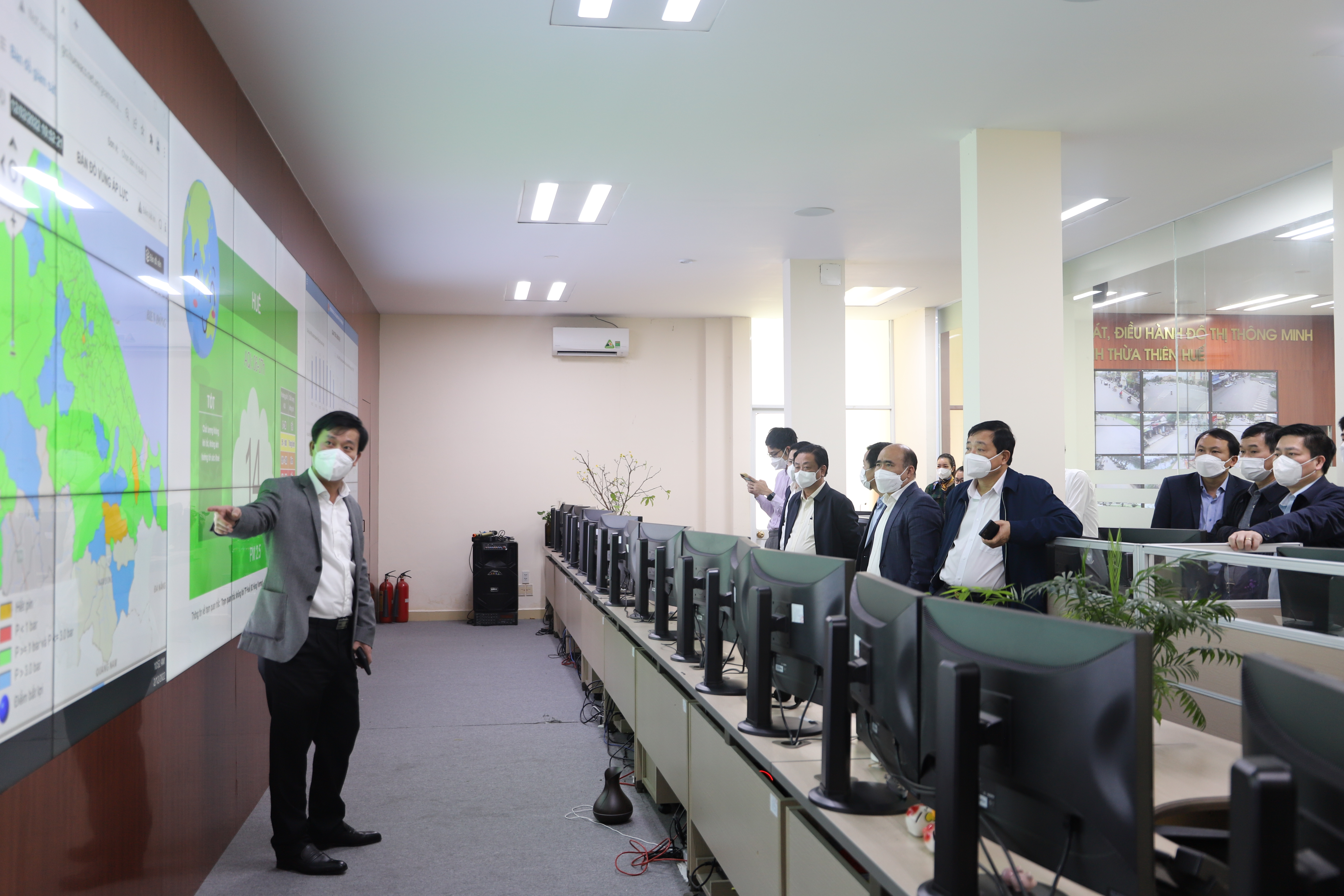 Báo cáo với Đoàn công tác, đồng chí Nguyễn Xuân Sơn, Bí thư Đảng ủy, Giám đốc Sở đã giới thiệu hơn 20 dịch vụ đô thị thông minh, hệ thống tổng đài 19001075 đang triển khai tại Trung tâm Giám sát, điều hành đô thị thông minh, những kết quả đạt được và nổi bật trong thời gian qua trong việc triển khai các dịch vụ đô thị thông minh, đặc biệt là các dịch vụ đô thị thông minh hỗ trợ cho lĩnh vực Nông nghiệp phát triển nông thôn như: Quản lý hồ đập, hệ thống quan trắc môi trường, lưu lượng nước, hệ thống phản ánh hiện trường của người dân, hệ thống nhận diện và cảnh báo cháy. Giới thiệu và thao tác cụ thể các dịch vụ mà người dân đang tương tác trực tiếp như: hệ thống phản ánh hiện trường, hệ thống nhận diện biển số xe, xe quá khổ, quá tải, hệ thống giám sát thông tin mạng.