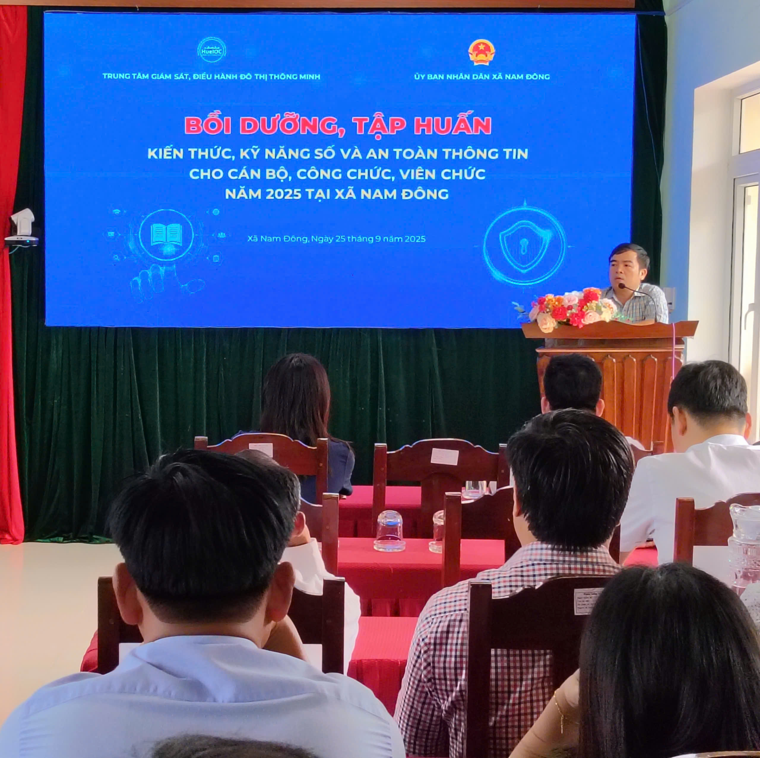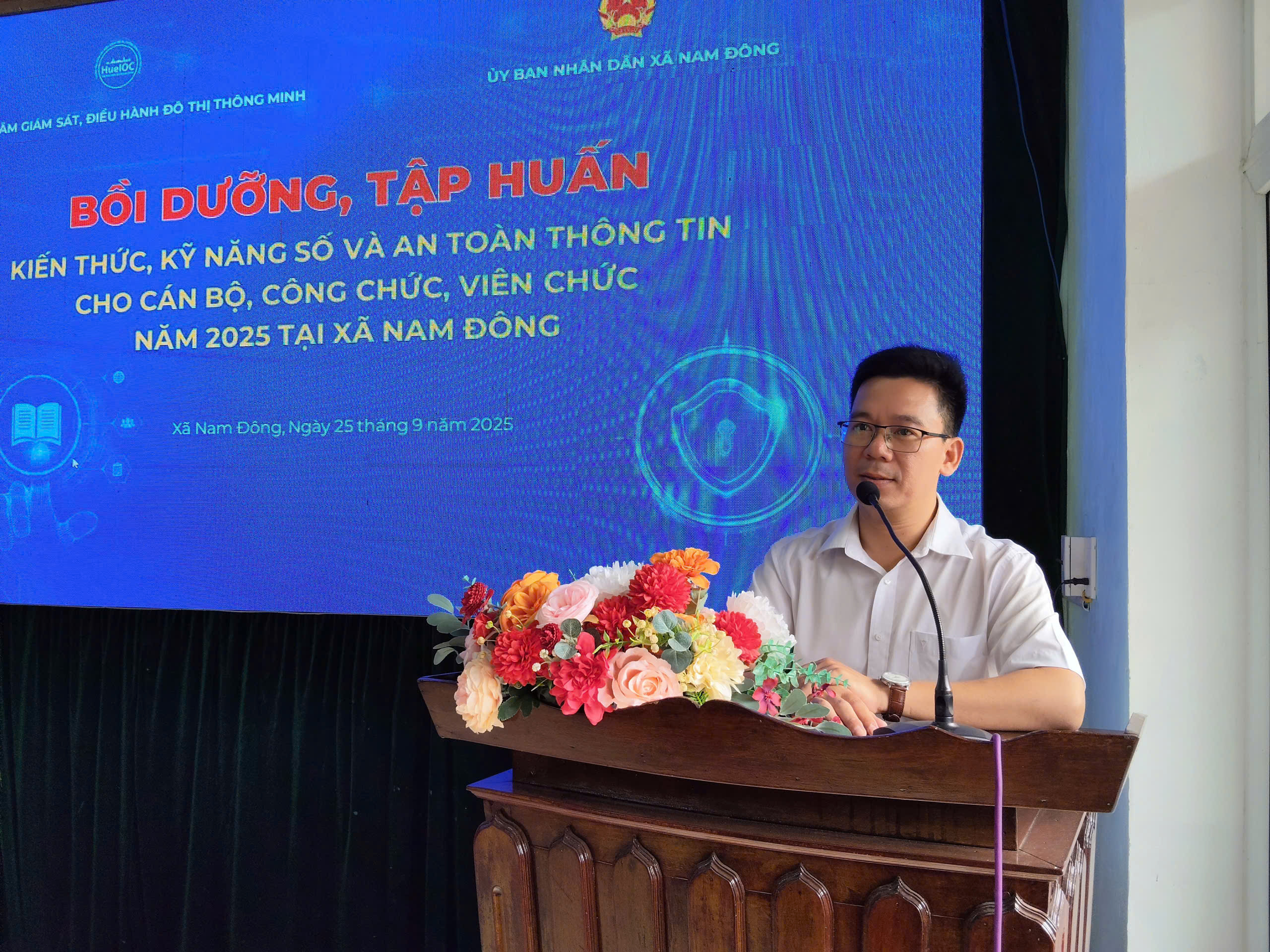Phát biểu tại buổi tập huấn, đồng chí Hoàng Chí Tâm – Trưởng phòng VH-XH xã Nam Đông, đã nhấn mạnh tầm quan trọng của việc đảm bảo kỹ năng số và an toàn thông tin, tránh các nguy cơ tiềm ẩn trên môi trường mạng hiện nay để cho các cán bộ có thể hoạch định, xây dựng chính sách, nguồn nhân lực, quản lý an toàn thông tin trong tổ chức, đơn vị mình. Vì vậy đề nghị ban tổ chức lớp học cần quán triệt và kiểm tra chặc chẽ thời gian học, đồng chí đã nhấn mạnh tầm quan trọng của khóa học và yêu cầu các học viên tham gia khóa học trên tinh thần tập trung, nghiêm túc để đạt hiệu quả cao nhất, công tác trao đổi, chia sẽ kỹ năng kết nối giữa thầy và trò là rất quan trọng.