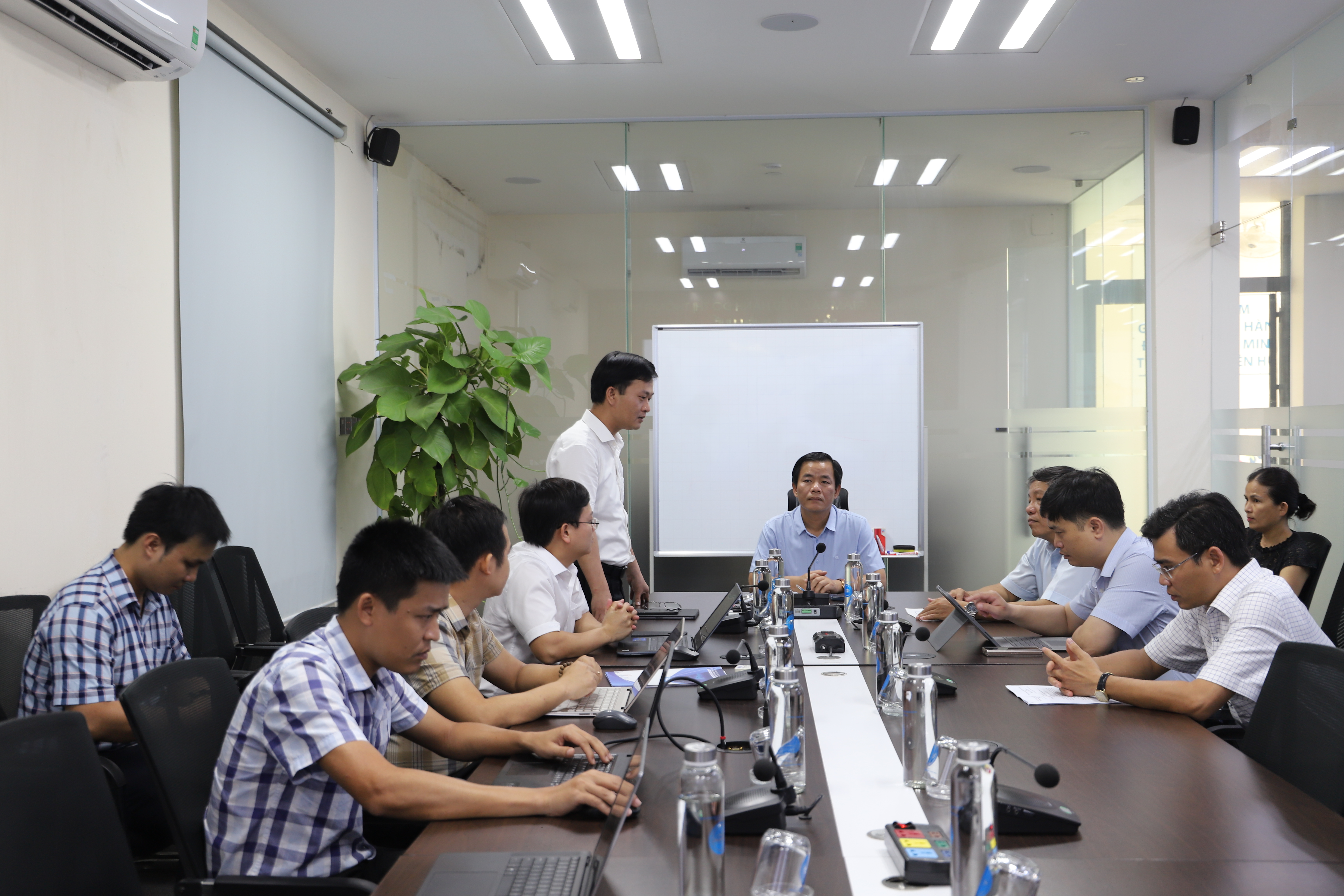 Đồng chí Nguyễn Xuân Sơn – Giám đốc Sở Thông tin và Truyền thông báo cáo tại buổi làm việc