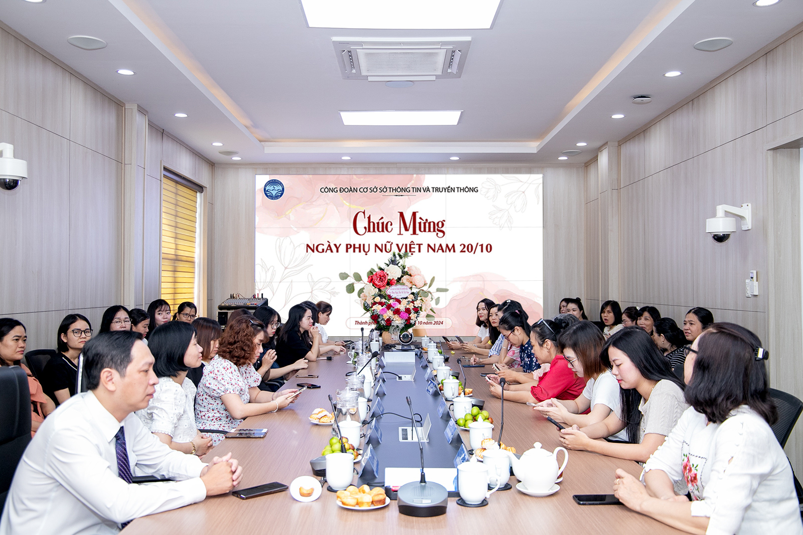 Sáng ngày 18/10/2024, Công đoàn cơ sở Sở Thông tin và Truyền thông tổ chức buổi gặp mặt toàn thể nữ cán bộ công chức, viên chức nhân kỷ niệm 94 năm Ngày thành lập Hội Liên hiệp Phụ nữ Việt Nam (20/10/1930 - 20/10/2024). Tham dự buổi gặp mặt có đồng chí Nguyễn Dương Anh – Phó Giám đốc Sở, Chủ tịch Công đoàn cùng lãnh đạo các phòng chuyên môn và Ban Giám đốc Trung tâm IOC. Buổi gặp mặt diễn ra trong không khí ấm áp và trang trọng với sự tham gia đầy đủ của toàn thể nữ cán bộ, công chức, viên chức Sở Thông tin và Truyền thông.