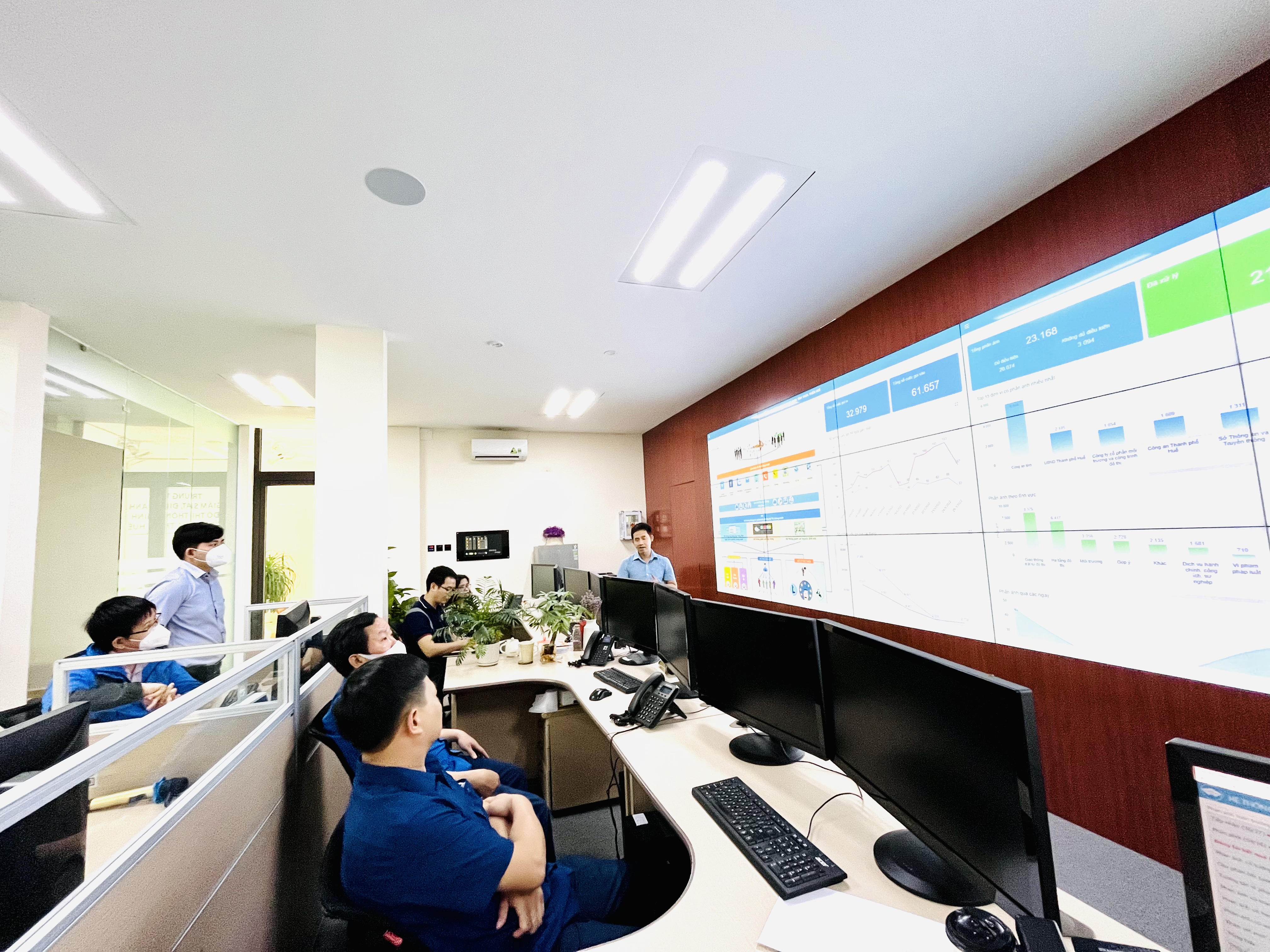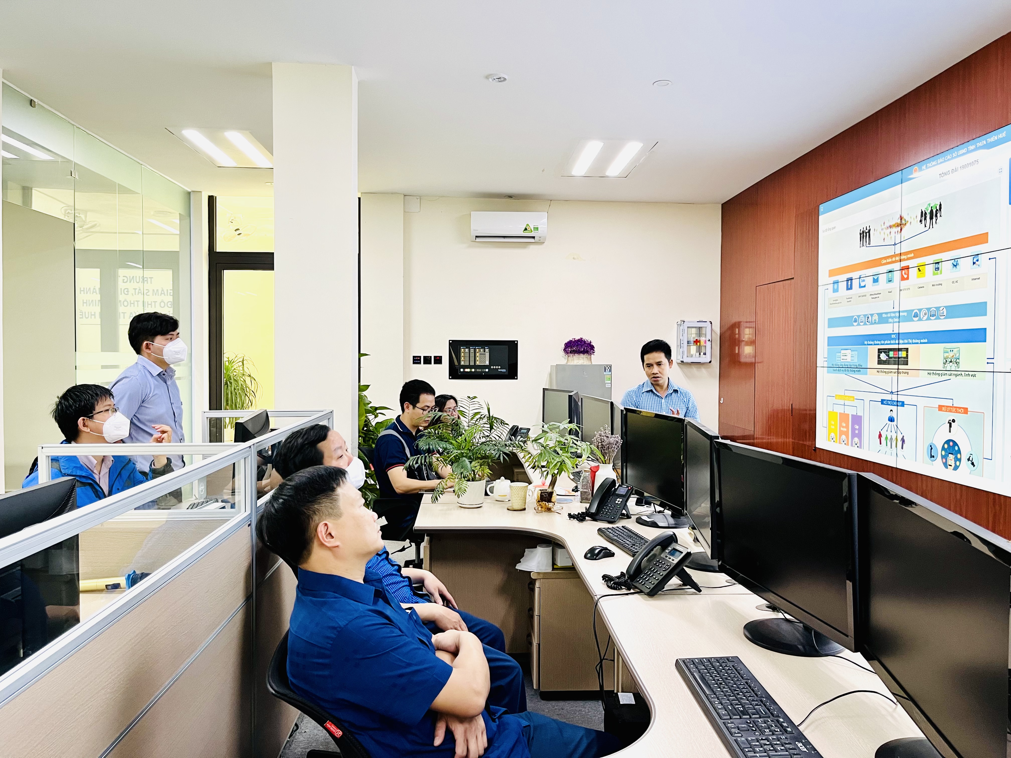 Tại buổi làm việc, đồng chí Trần Trọng Hiếu - Phó Giám đốc Trung tâm IOC đã giới thiệu về các dịch vụ đô thị thông minh; hệ thống tổng đài 19001075 đang triển khai và vận hành ở Trung tâm những kết quả nổi bật đạt được trong thời gian qua trong việc triển khai các dịch vụ đô thị thông minh. Đặc biệt, các đại biểu được nghe giới thiệu một số tính năng hữu ích của ứng dụng Hue-S trên trong việc quản lý điều hành, chức năng phòng chống dịch, chức năng quản lý giáo dục, quy hoạch đất đai... hiện đang triển khai tại tỉnh Thừa Thiên Huế. Hue-S không chỉ phục vụ người dân mà còn là công cụ hữu ích cho cán bộ trong công tác xử lý công việc ngay trên ứng dụng thông qua chức năng “Chính quyền số”.