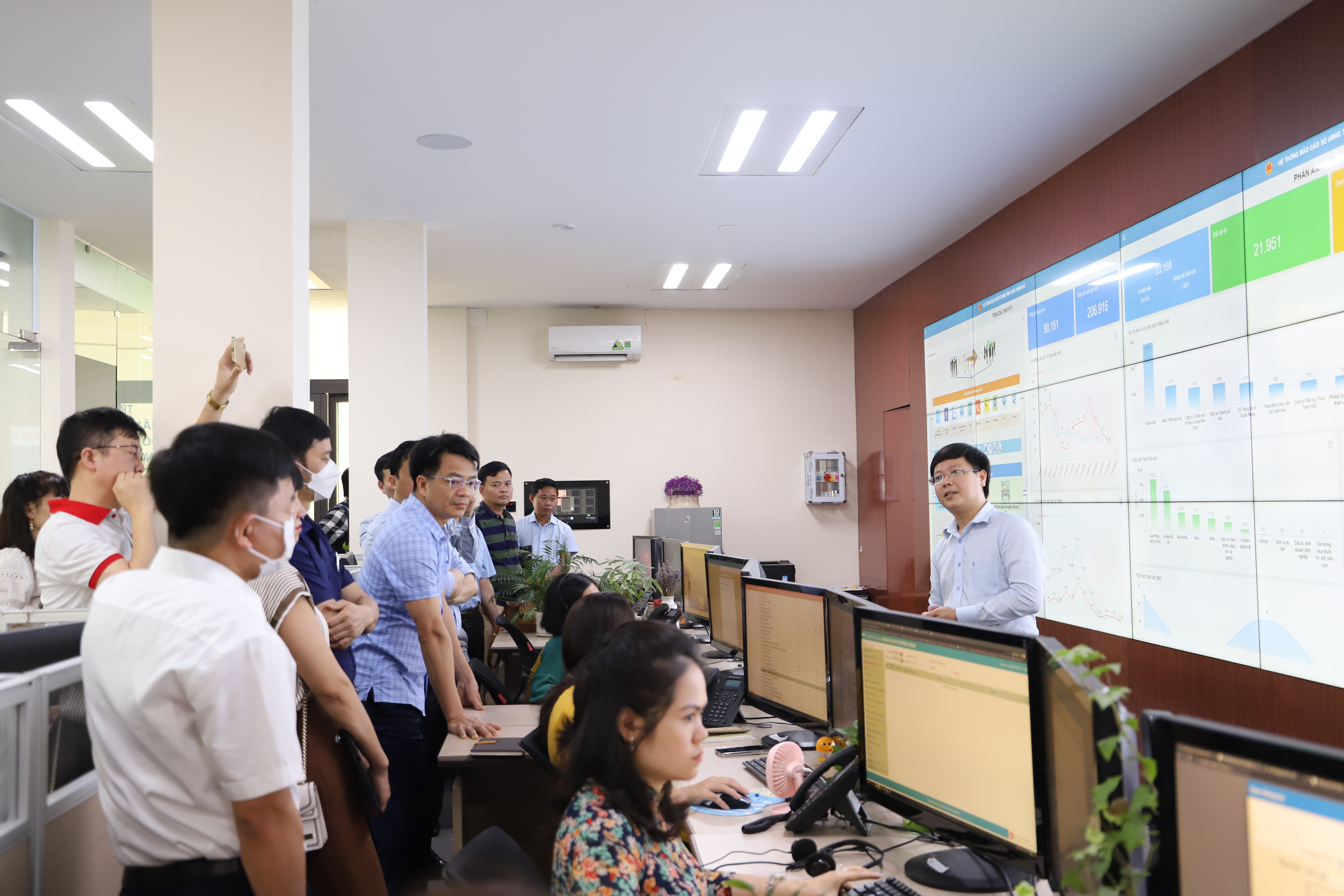 Sáng ngày 23/5, Đoàn công tác của UBND tỉnh Bắc Giang do đồng chí Phạm Văn Đà – Phó Chánh Văn phòng UBND tỉnh Bắc Giang làm Trưởng đoàn, đồng chí Nguyễn Gia Phong – Phó Giám đốc Sở thông tin và Truyền thông tỉnh Bắc Giang, đồng chí Trần Văn Đông – Phó Giám đốc Sở Nội vụ tỉnh Bắc Giang cùng lãnh đạo các đơn vị, phòng, ban chuyên môn đã đến tham quan mô hình và làm việc với Trung tâm Giám sát, điều hành đô thị thông minh tỉnh Thừa Thiên Huế (IOC).