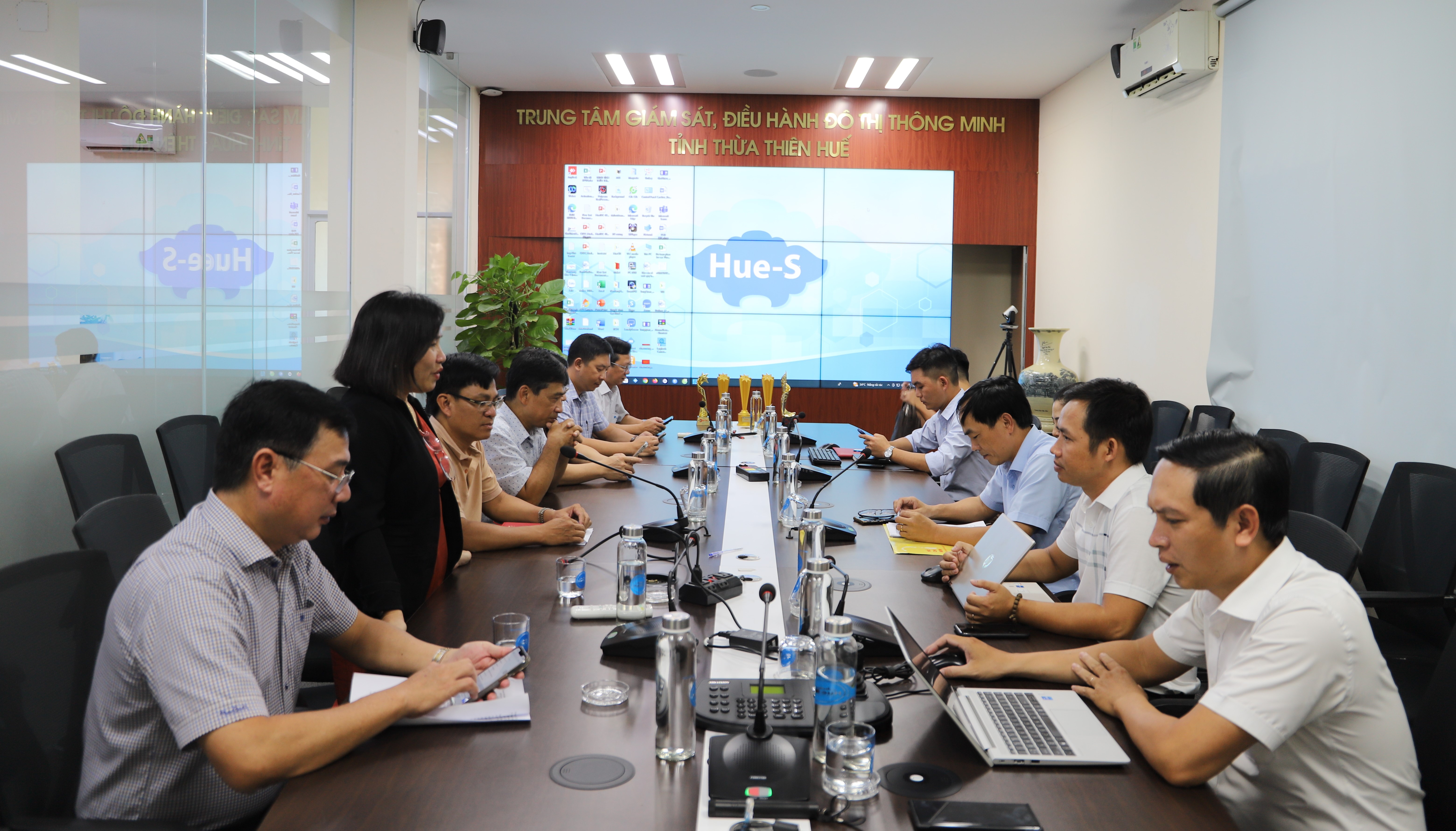 Đặc biệt đồng chí Nguyễn Dương Anh đã trình bày một số kinh nghiệm trong việc triển khai chiến dịch cấp chữ ký số công cộng cho người dân trên địa bàn tỉnh và công bố ứng dụng Dịch vụ công trực tuyến trên nền tảng Hue-S. Bên cạnh đó, các thành viên đã được nghe đồng chí Trần Trọng Hiếu giới thiệu về cách quản lý, vận hành các dịch vụ đô thị thông minh đang triển khai cũng như các dịch vụ đô thị thông minh được tích hợp trên nền tảng Hue-S, đặc biệt là ví điện tử - dịch vụ hỗ trợ phát triển kinh tế số trên địa bàn tỉnh.