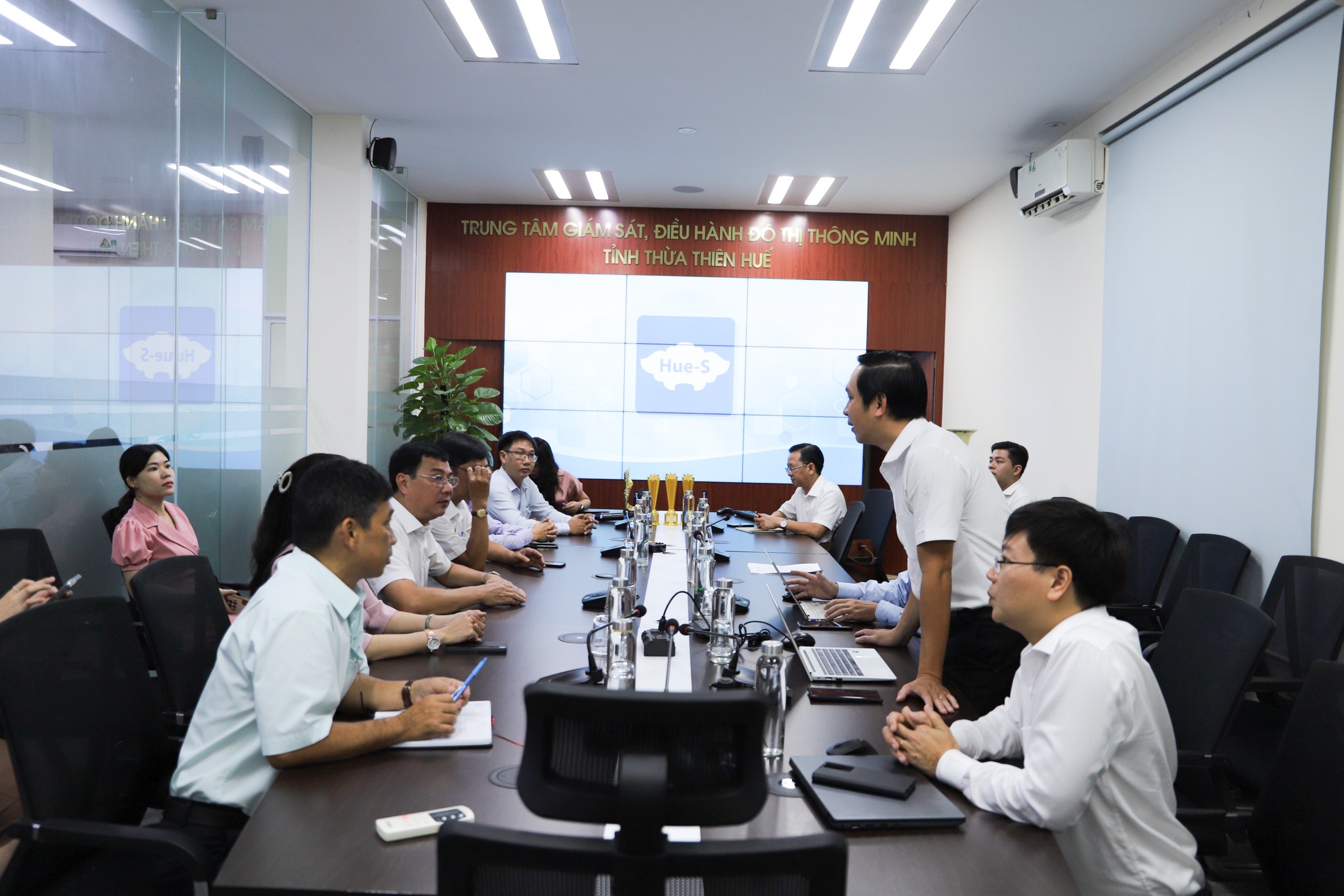 Mở đầu buổi làm việc, đồng chí Bùi Hoàng Minh đã giới thiệu về quy trình vận hành các dịch vụ đô thị thông minh như vụ phản ánh hiện trường, giám sát vi phạm giao thông, giám sát thông tin báo chí.... Đồng thời, các đồng chí tham dự cũng được nghe giới thiệu về các dịch vụ đang triển khai trên nền tảng Hue-S cũng những kết quả nổi bật đã đạt được trong 03 năm qua.