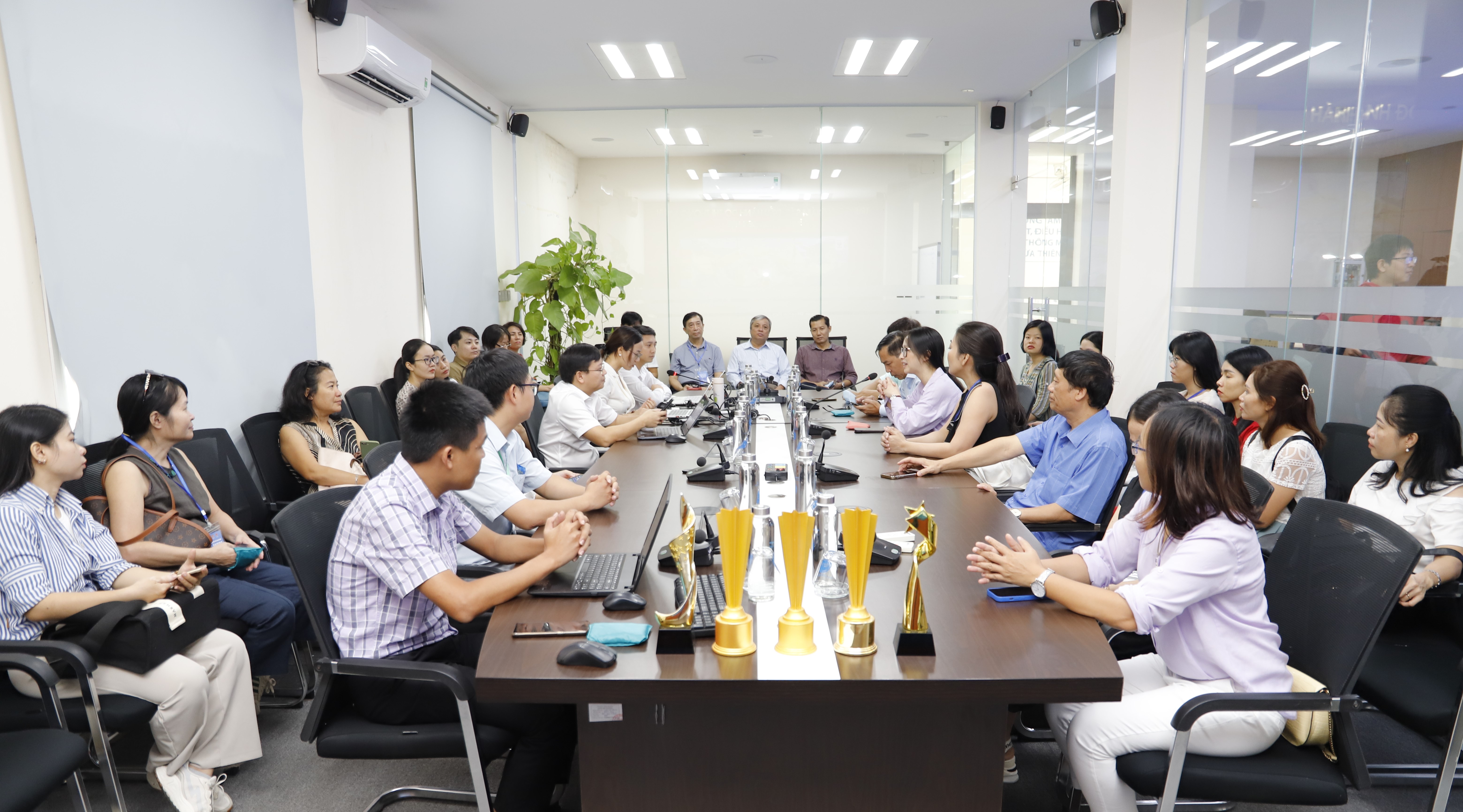 Trao đổi tại buổi làm việc các đồng chí trong đoàn đại biểu mong muốn được tìm hiểu về ứng dụng thông tin trong quản lý đô thị thông minh, đặc biệt trong lĩnh vực quản lý chất thải rắn: hệ thống camera giám sát vi phạm môi trường, vị trí các điểm thùng lưu chứa rác, quảng bá các quy tắc ứng xử giảm nhựa tại các điểm di sản và du lịch.