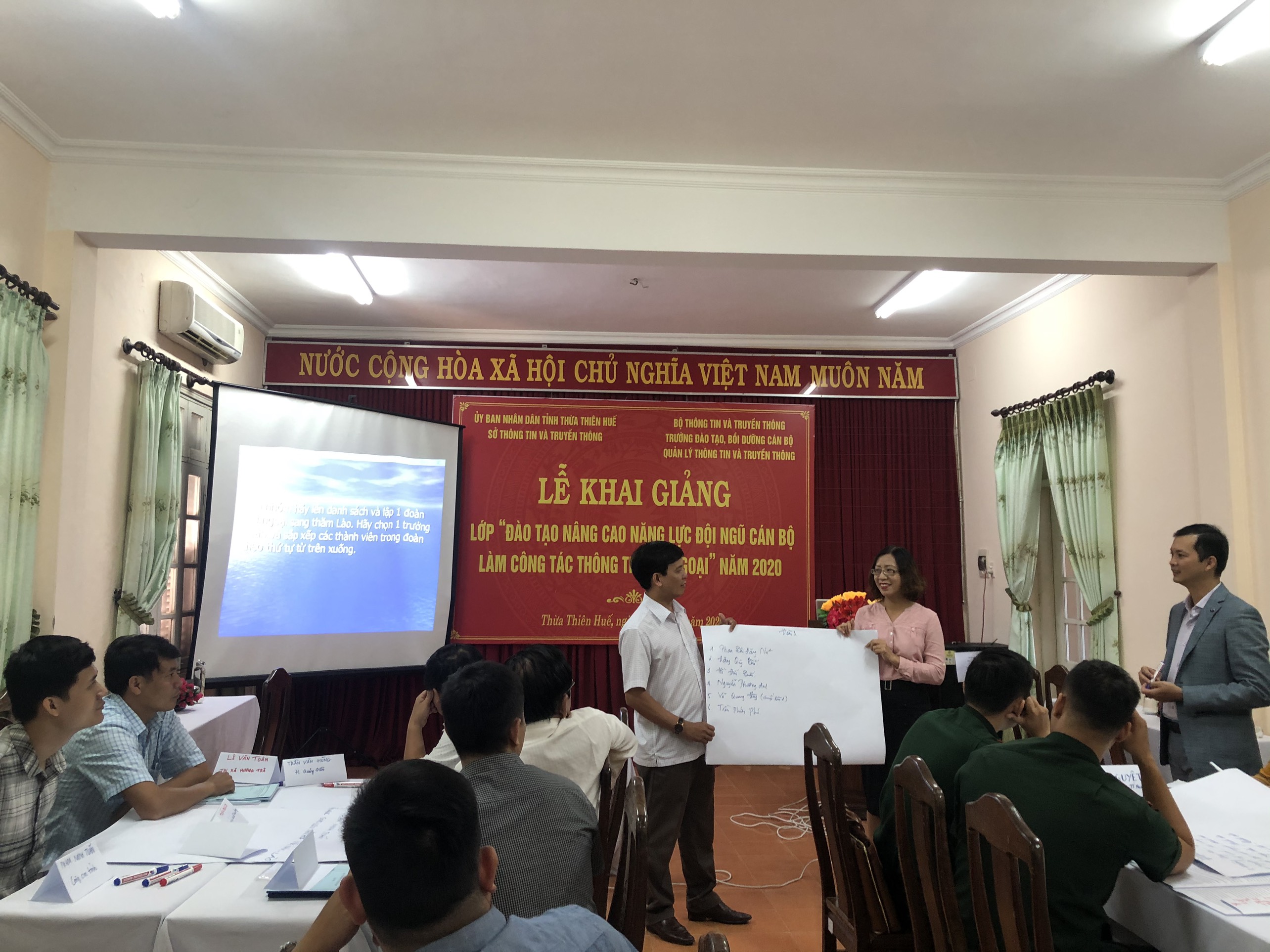 Đến dự Lễ Khai giảng có đ/c Lê Ngọc Bảo – Phó hiệu trưởng Trường Đào tạo, bồi dưỡng cán bộ quản lý thông tin và truyền thông; đ/c Nguyễn Huy Hiển – P. Giám đốc Sở Thông tin và Truyền thông; đ/c Nguyễn Huy Thái – Phó Giám đốc - Sở Ngoại vụ; đ/c Thượng tá Đặng Đình Liêu – Phó tham mưu trưởng – BHC Bộ đội biên phòng tỉnh Thừa Thiên Huế; đ/c Hoàng Thái Lợi – Phó Hiệu trưởng Trường Trung cấp nghề huyện Quảng Điền, cùng tất cả các học viên của khóa học.