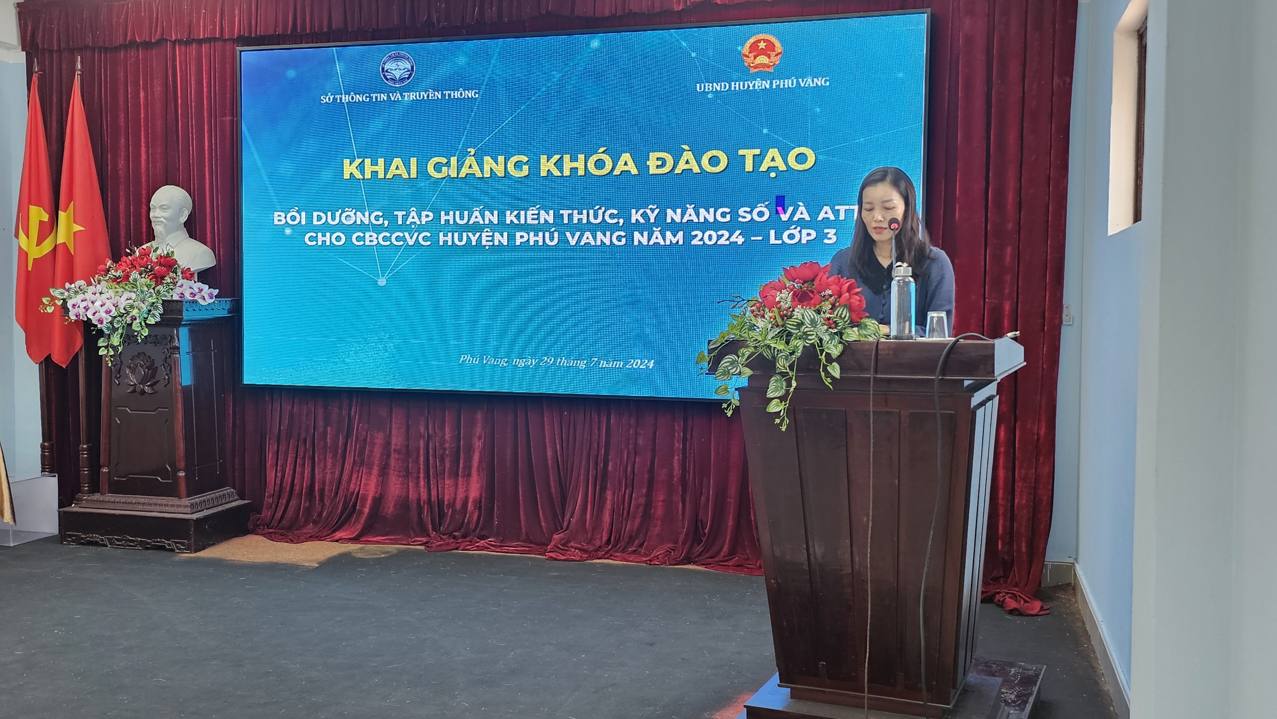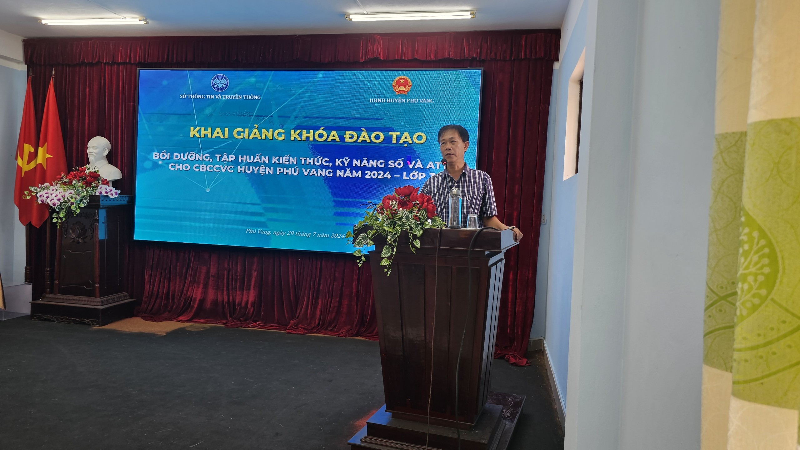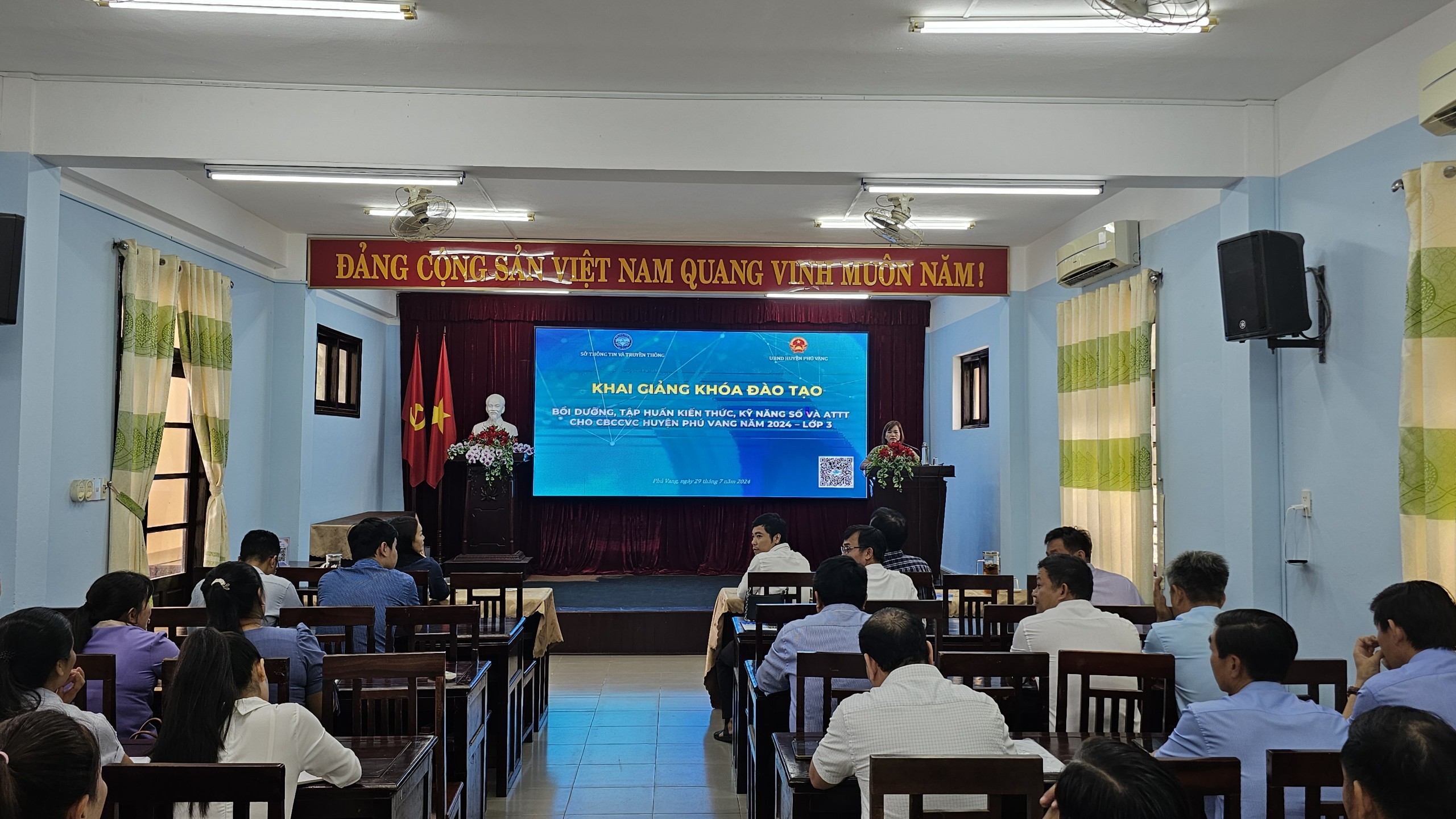 Đến dự khai giảng về phía huyện Phú Vang có đồng chí Hồ Đắc Hải Nam – Chánh Văn phòng UBND huyện; đồng chí Lê Thái Tuấn – Trưởng phòng Phòng Văn hoá và Thông tin huyện; cùng tất cả các học viên của khóa học. Về phía Trung tâm Giám sát, điều hành đô thị thông minh (IOC) có đồng chí Lê Thị Nhật Thịnh – Phó Giám đốc Trung tâm; cùng các báo cáo viên.