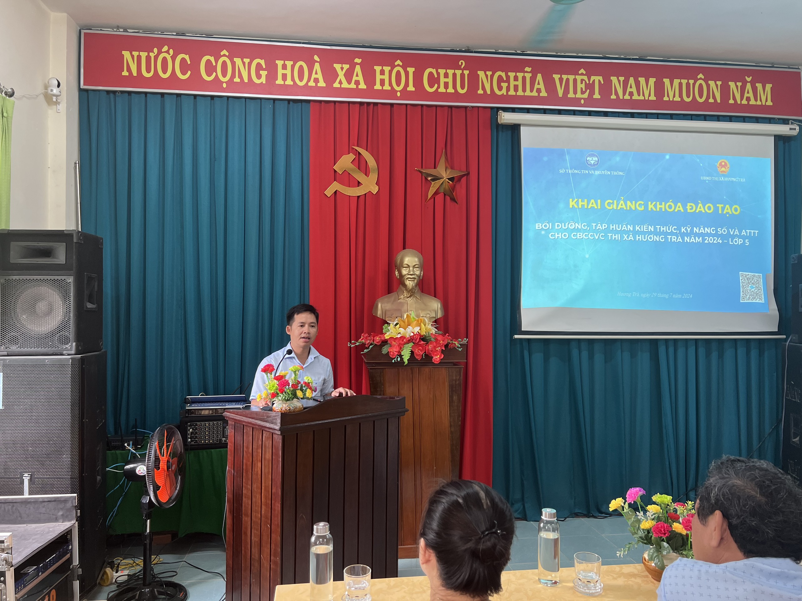 Đến dự khai giảng về phía thị xã Hương Trà có đồng chí Dương Thị Minh Thi – Phó chánh Văn phòng UBND thị xã; đồng chí Nguyễn Văn Duật – Trưởng phòng Phòng Văn hoá và Thông tin huyện; đồng chí Trần Minh Quang – Giám đốc Trung tâm GDNN-GDTX thị xã; cùng tất cả các học viên của khóa học. Về phía Trung tâm Giám sát, điều hành đô thị thông minh (IOC) có đồng chí Trần Trọng Hiếu – Phó Giám đốc phụ trách Trung tâm; cùng các báo cáo viên.