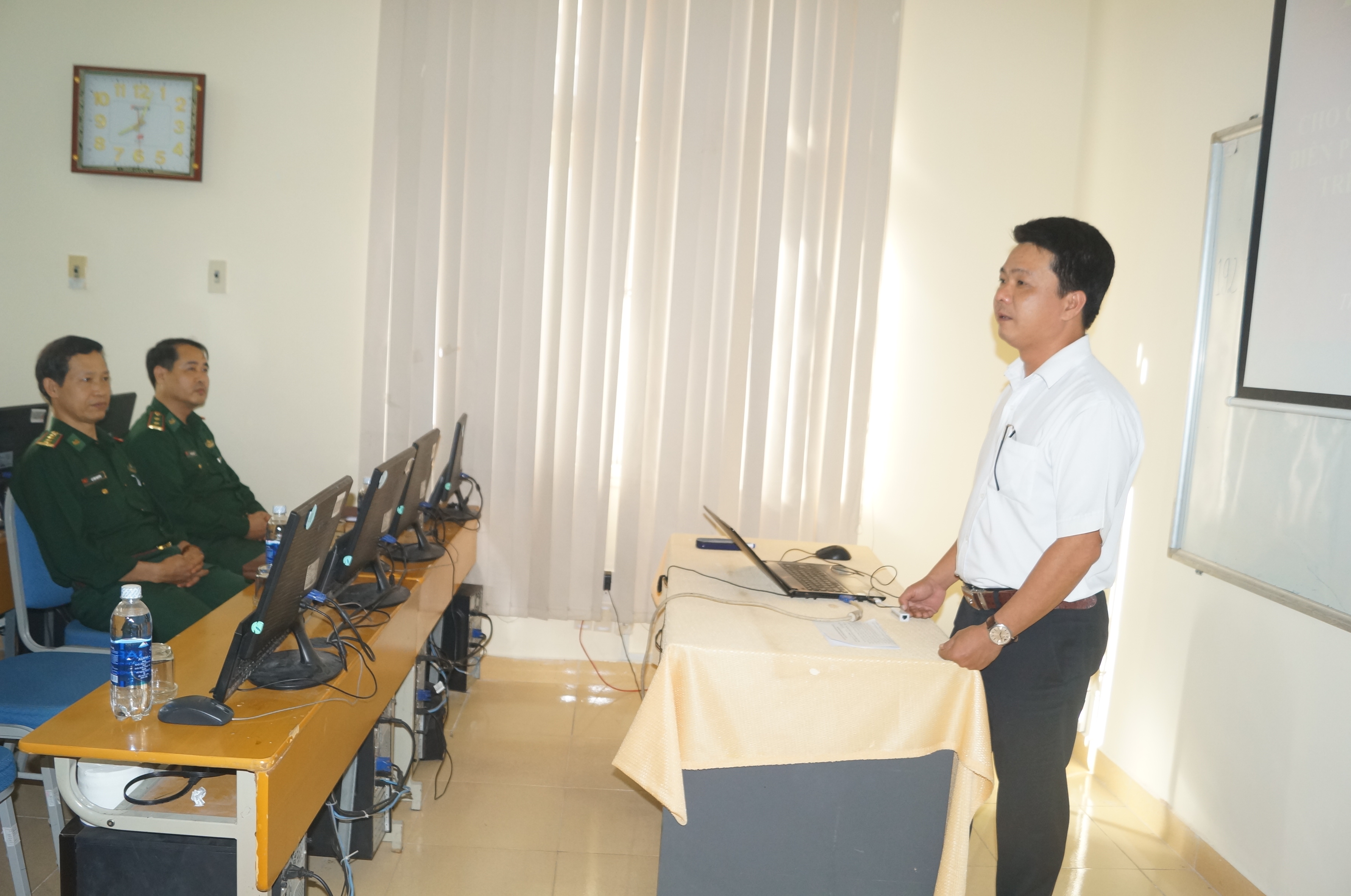 Đến dự và phát biểu khai giảng khóa đào tạo buổi lễ khai giảng có đồng chí Đại tá Lê Văn Nguyên, Bí Thư Đảng ủy, Chính ủy – Bộ chỉ huy Bộ đội biên phòng tỉnh; Đồng chí Nguyễn Huy Hiển, Phó Giám đốc Sở Thông tin và Truyền thông; Đồng chí Hồ Văn An – PGĐ Trung tâm Công nghệ thông tin và Truyền thông.