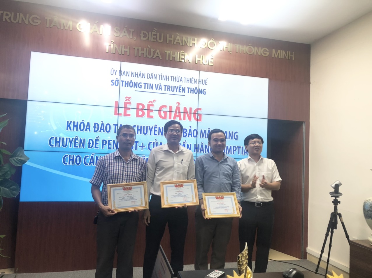 Đến dự Lễ Bế giảng có đồng chí Bùi Hoàng Minh – Giám đốc Trung tâm Giám sát, điều hành đô thị thông minh cùng tất cả các học viên của khóa học. Tại buổi Lễ, đồng chí Hồ Văn An – Trưởng phòng Hành chính – Dịch vụ Trung tâm IOC đã báo cáo tổng kết chương trình đào tạo chuyên sâu Bảo mật mạng (Chuyên đề: Pentest+ của chuẩn hãng CompTIA) cho cán bộ chuyên trách CNTT, cán bộ quản trị hệ thống năm 2022.