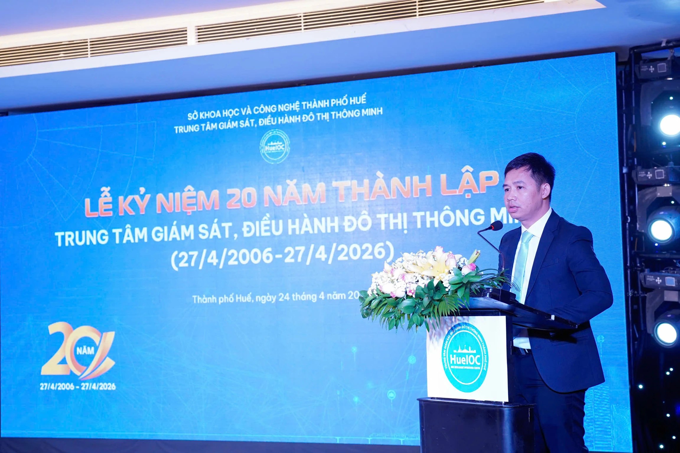 Phát biểu tại buổi lễ, đồng chí Trần Trọng Hiếu - Giám đốc Trung tâm HueIOC đã bày tỏ lòng tri ân sâu sắc đến các cấp lãnh đạo thành phố, lãnh đạo Sở KH&CN; các cơ quan, đơn vị, cộng đồng doanh nghiệp công nghệ, đối tác và toàn thể các thế hệ lãnh đạo, cán bộ, viên chức và người lao động của Trung tâm qua các thời kỳ đã luôn đồng hành, dành trọn tâm huyết, trí tuệ cho sự nghiệp phát triển của Trung tâm nói riêng và của thành phố Huế nói chung.