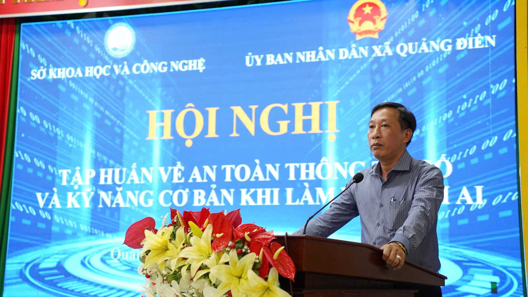 Phát biểu khai mạc buổi tập huấn, ông Nguyễn Ánh Cầu - Chủ tịch UBND xã Quảng Điền nhấn mạnh, việc nâng cao nhận thức và trang bị các kỹ năng cơ bản để tiếp cận, sử dụng dịch vụ số một cách an toàn, hiệu quả là yêu cầu cấp thiết trong giai đoạn hiện nay. Ông khuyến khích đội ngũ cán bộ, công chức tích cực ứng dụng công nghệ số vào công việc hằng ngày nhằm nâng cao chất lượng, hiệu quả xử lý công việc, rút ngắn thời gian và tạo thuận lợi trong quá trình thực thi nhiệm vụ. Những kiến thức, kỹ năng được chia sẻ tại buổi tập huấn sẽ là nền tảng quan trọng để vận dụng hiệu quả vào thực tiễn, góp phần nâng cao năng lực trong thời kỳ chuyển đổi số.