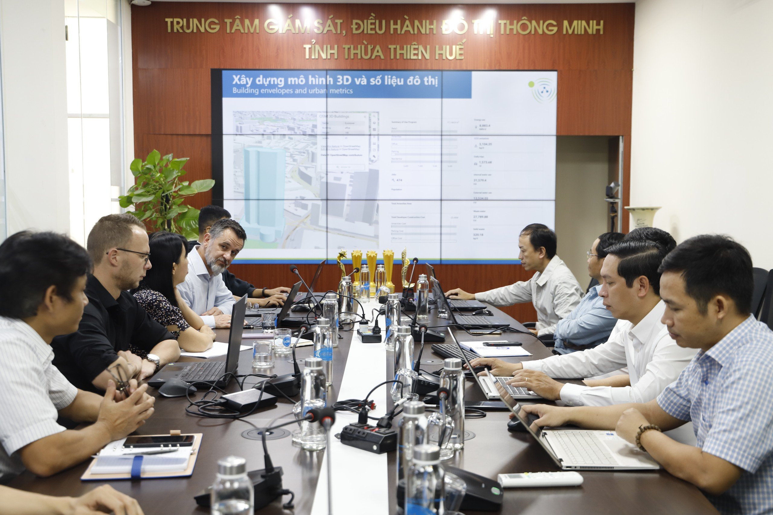 Trao đổi tại buổi làm việc, các chuyên gia đến từ Đoàn công tác ADB đã giới thiệu và trình diễn Mô hình đô thị kỹ thuật số thông minh, mô hình bay chụp quản lý 3D các khu vực thành phố Huế, mô hình tập trung dân số cùng mô hình các vùng ngập lụt trên địa bàn. Cả hai cùng thảo luận về việc duy trì mô hình đô thị kỹ thuật số thông minh và vai trò quan trọng của người sử dụng có chuyên môn, các lợi ích của mô hình đô thị kỹ thuật số thông minh đối với bình đẳng giới, người khuyết tật và hòa nhập xã hội.