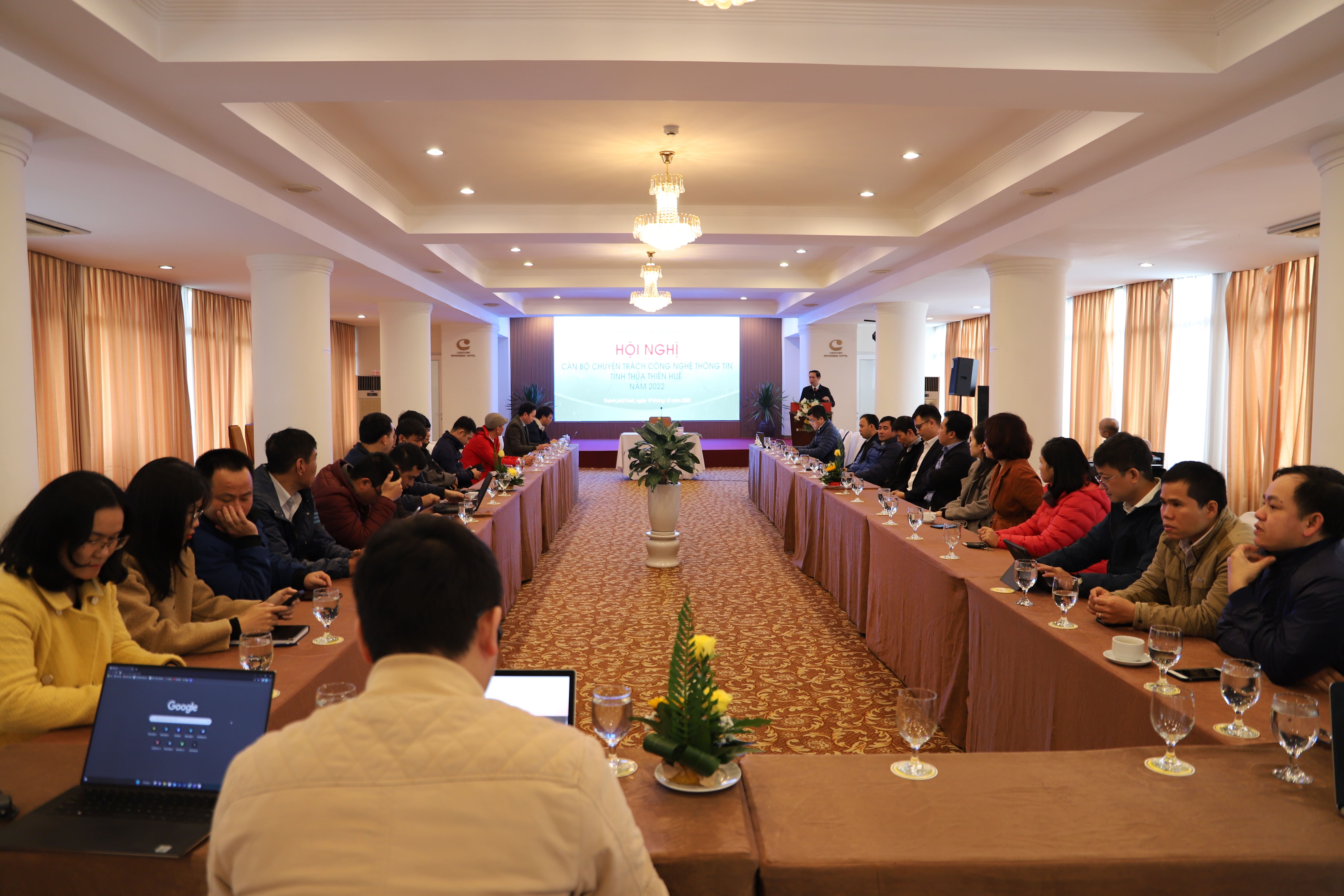 Tham dự Hội nghị có đồng chí Nguyễn Dương Anh, Phó Giám đốc Sở Thông tin và Truyền thông, đồng chí Lê Vĩnh Chiến – Phó Giám đốc Trung tâm Công nghệ thông tin tỉnh, cùng đại diện lãnh đạo, cán bộ chuyên trách Công nghệ thông tin của các cơ quan chuyên môn trực thuộc UBND tỉnh, UBND các huyện, thị xã và thành phố Huế.