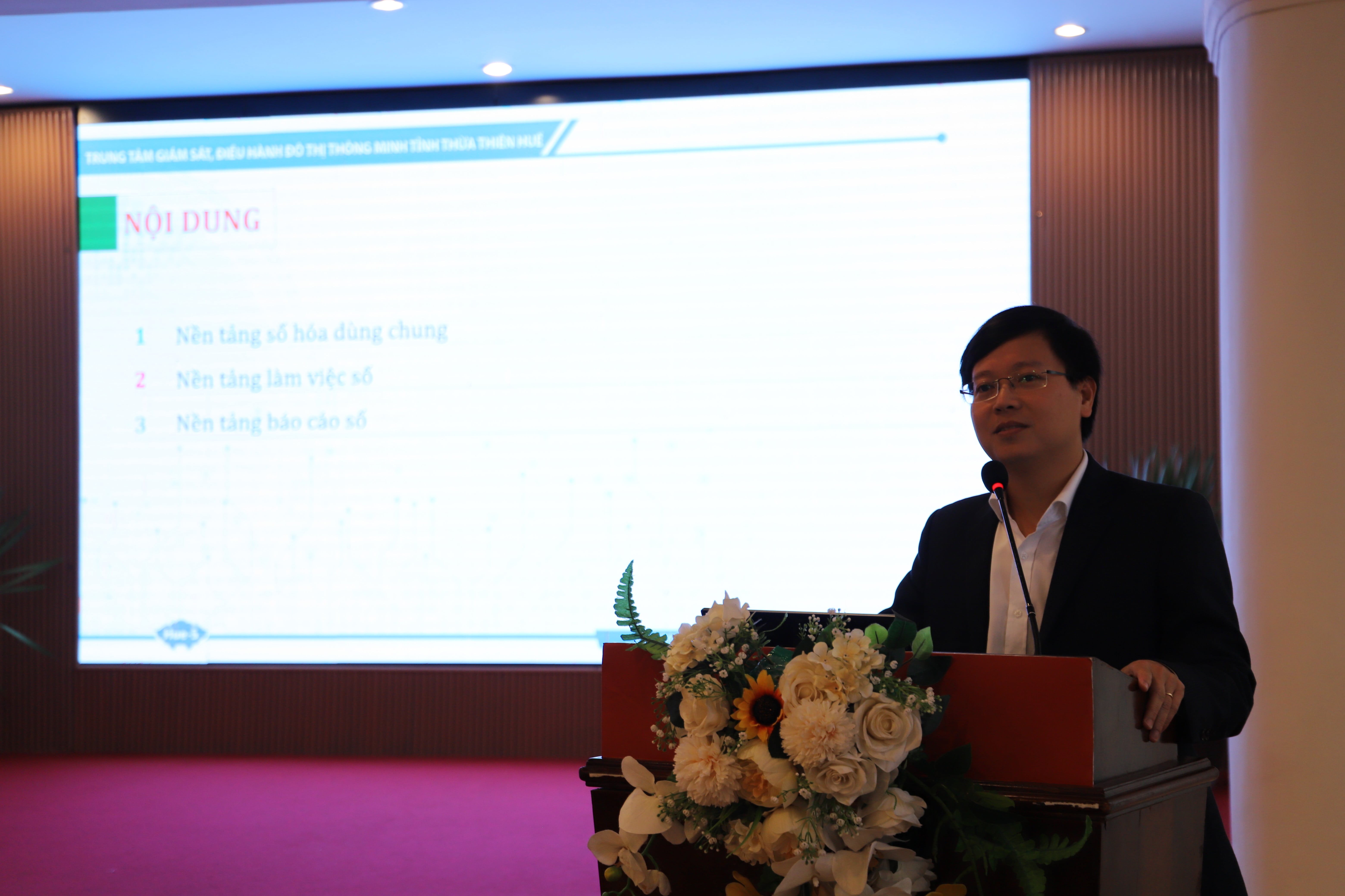 Hội nghị cũng đã được nghe trình bày các nội dung chính của các chính sách, văn bản chỉ đạo của các cấp. Đồng chí Bùi Hoàng Minh, Giám đốc Trung tâm IOC trình bày giới thiệu tổng quan các nền tảng Số hóa dùng chung, Làm việc số, Báo cáo số của tỉnh đang triển khai.