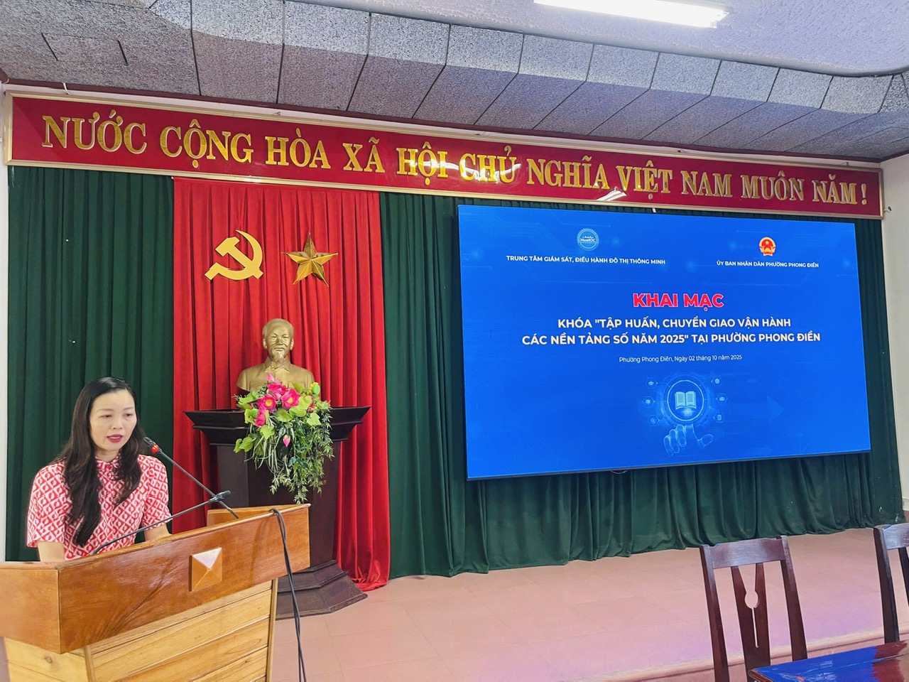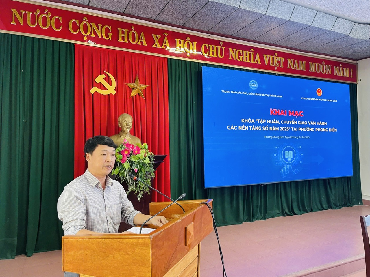 Ngày 02/10/2025, Trung tâm Giám sát, điều hành đô thị thông minh thành phố Huế (HueIOC) tổ chức Tập huấn chuyển giao, vận hành các nền tảng số cho cán bộ, công chức, viên chức năm 2025 tại phường Phong Điền.