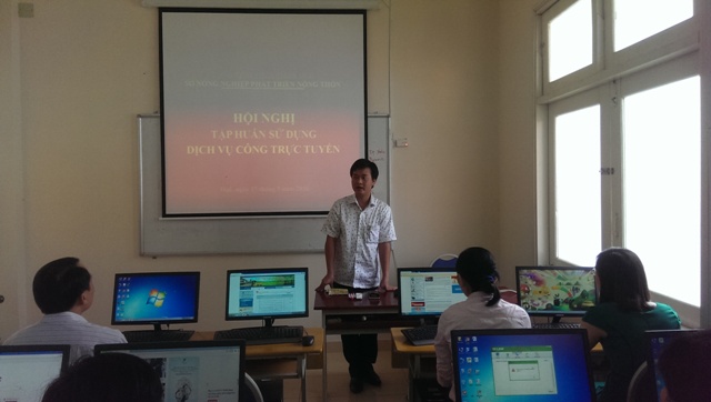 Tại buổi tập huấn, đ/c Nguyễn Xuân Sơn – Phó Giám đốc Sở Thông tin và Truyền thông giới thiệu các định hướng của Tỉnh, giới thiệu quy trình chuẩn xử lý một TTHC đã xây dựng ISO và khi được tin học hóa lên hệ thống phần mềm và phân tích những ưu, nhược điểm của quy trình truyền thống và quy trình xử lý trực tuyến.