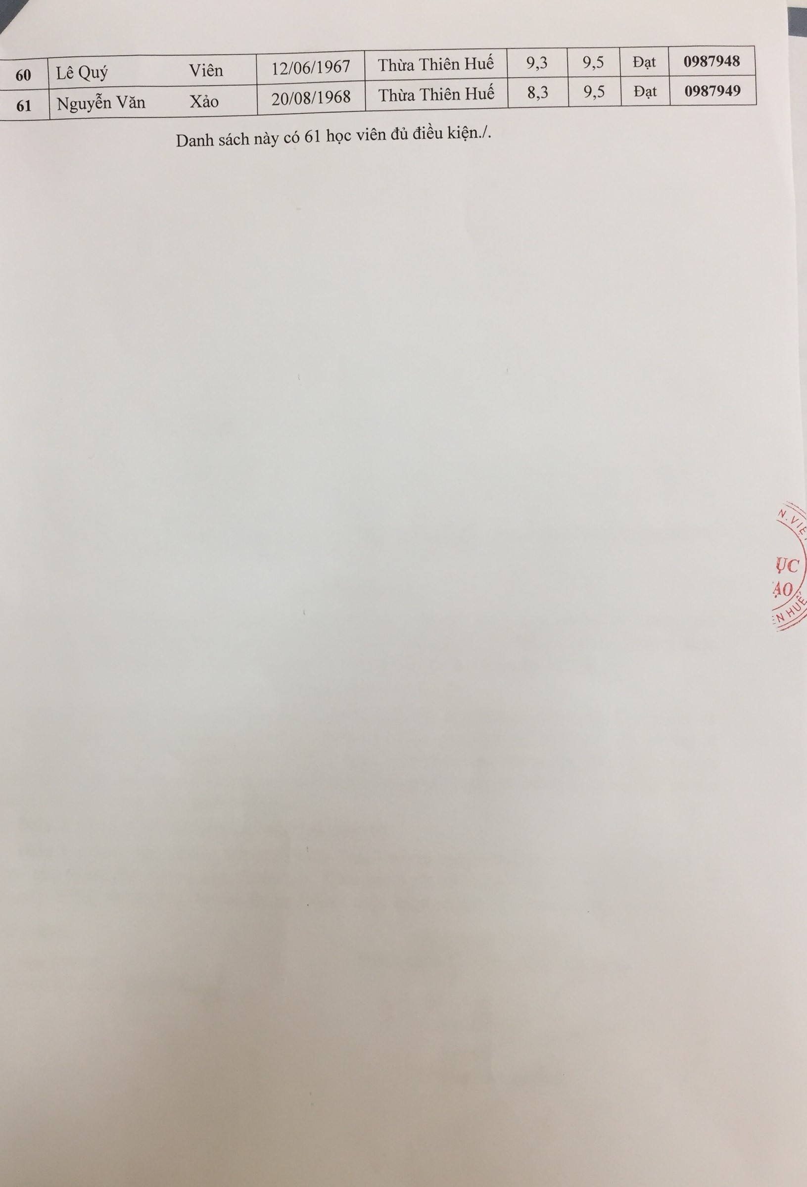 Các học viên có kết quả "ĐẠT" chú ý kiểm tra thông tin cá nhân như "Ngày sinh" và "Nơi sinh" chính xác. Nếu sai sót vui lòng gửi về email "mytramcntt@gmail.com" để chỉnh sửa.