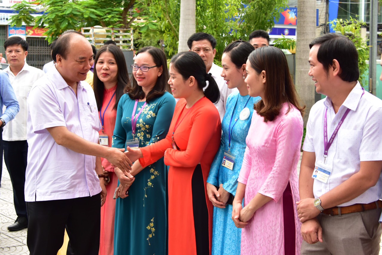Thủ tướng Nguyễn Xuân Phúc bắt tay với CBCCVC của Sở Thông tin và Truyền thông