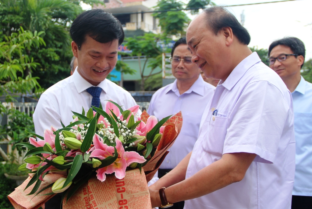 Đồng chí Nguyễn Xuân Sơn - Giám đốc Sở tặng hoa cho Thủ tướng Nguyễn Xuân Phúc