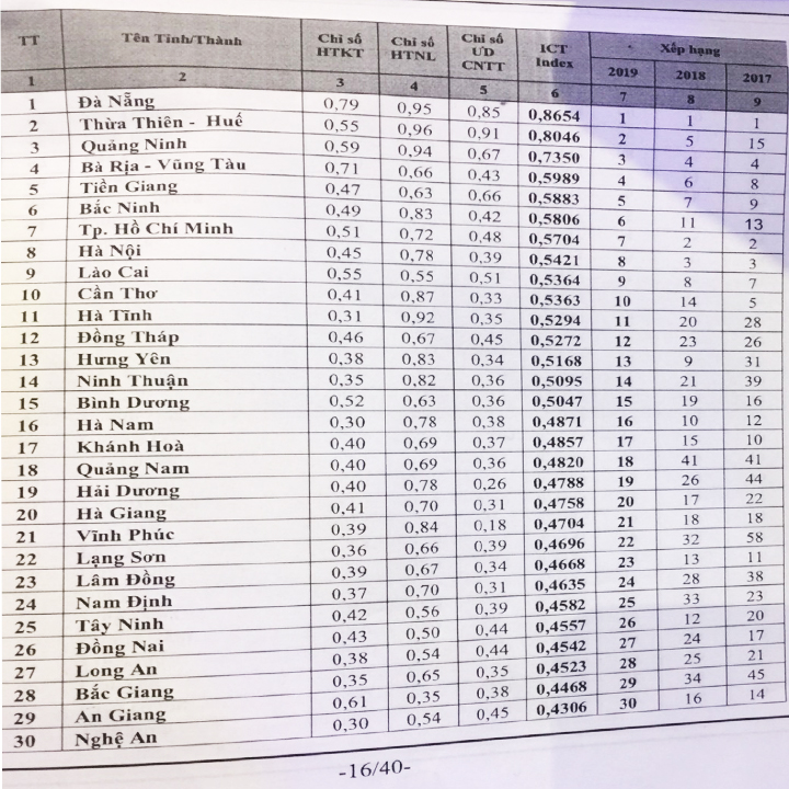 Bảng xếp hạng Chỉ số sẵn sàng cho phát triển và ứng dụng công nghệ thông tin – truyền thông Việt Nam (Vietnam ICT Index) năm 2019