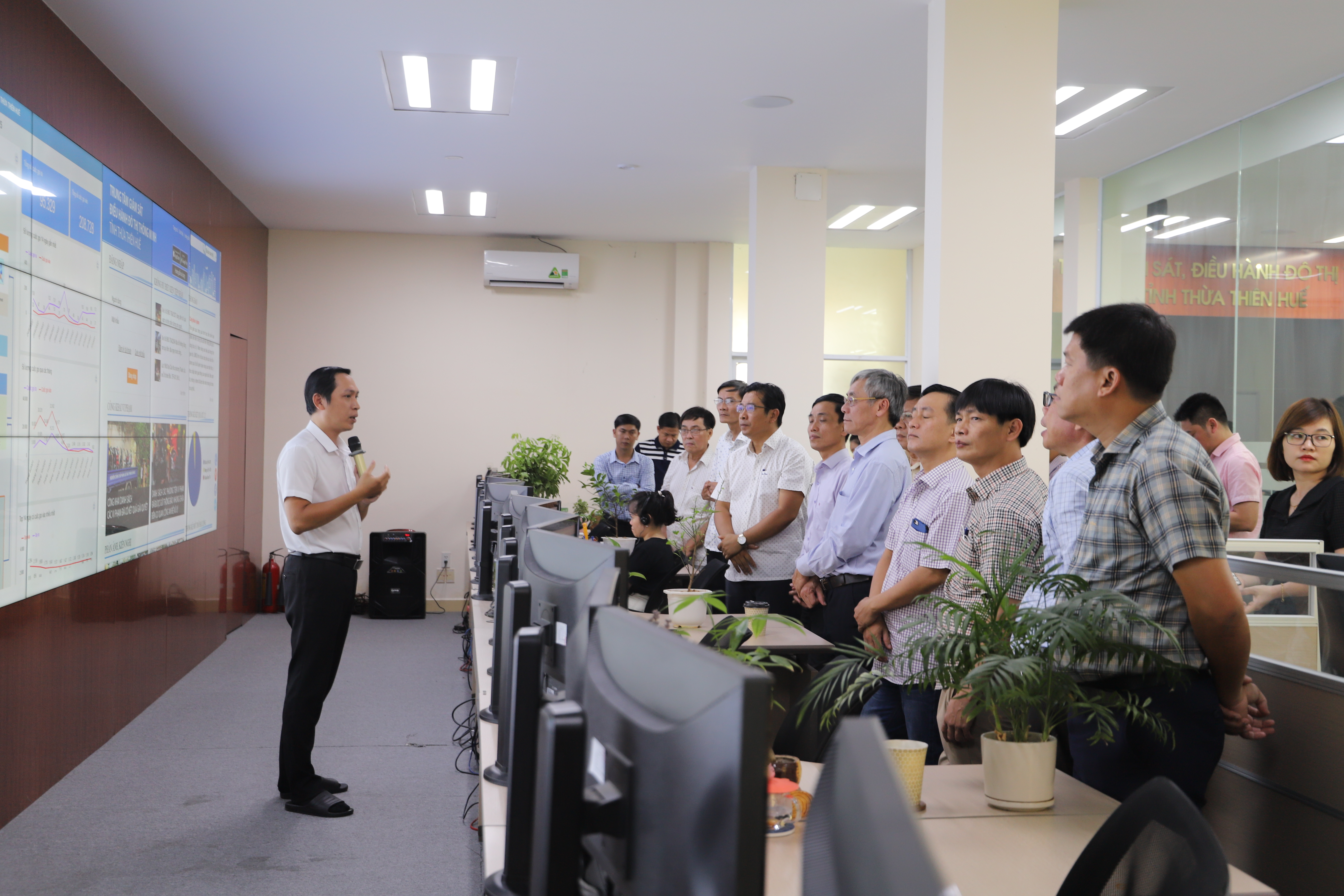 Tại buổi làm việc, đồng chí Nguyễn Dương Anh đã giới thiệu và chia sẻ những kinh nghiệm trong triển khai các dịch vụ đô thị thông minh tại Thừa Thiên Huế. Hiện Trung tâm IOC đang vận hành gần 20 dịch vụ đô thị thông minh. Các dịch vụ đô thị thông minh được vận hành đảm bảo hoạt động hiệu quả 24/7 thông qua việc phân chia ca, kíp hoạt động liên tục, quy trình tiếp nhận và xử lý thông tin đảm bảo theo thời gian thực.