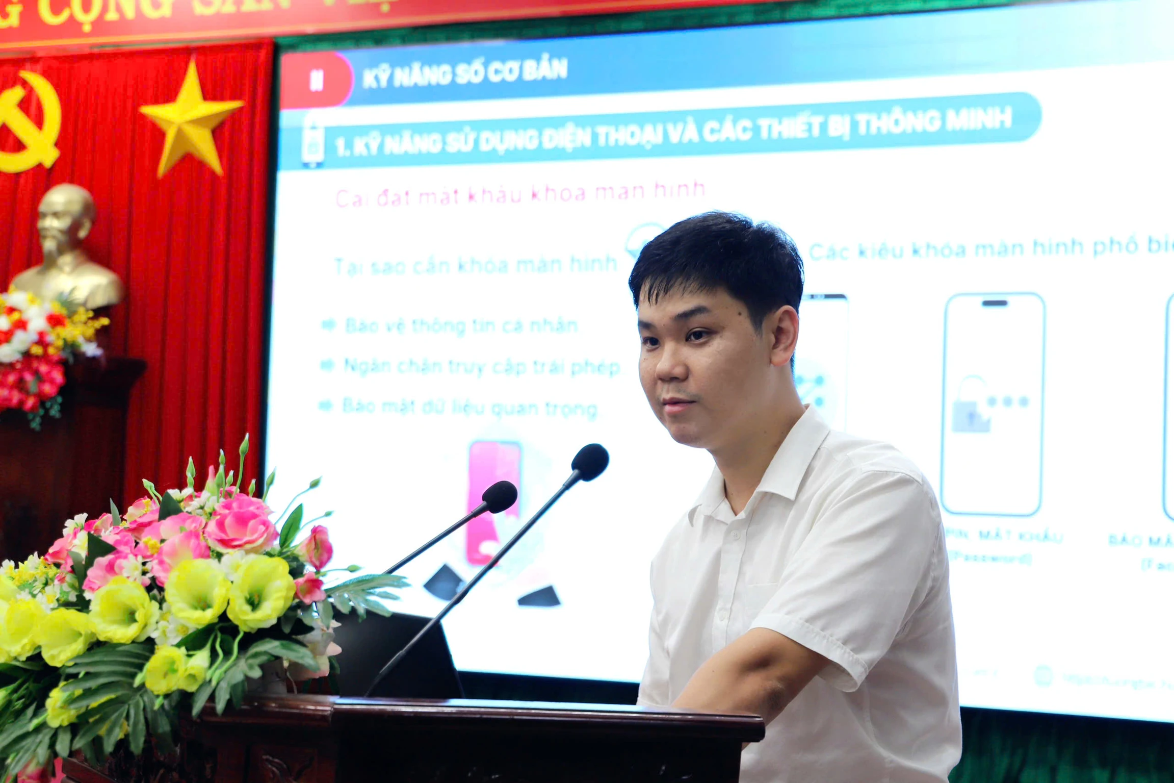 Tại buổi tập huấn, các học viên được giới thiệu tổng quan về chuyển đổi số trong bối cảnh hiện nay, đồng thời được hướng dẫn các kỹ năng số thiết yếu phục vụ công tác. Trọng tâm là kỹ năng sử dụng nền tảng Hue-S, khai thác dịch vụ công trực tuyến, thực hiện thanh toán không dùng tiền mặt, cũng như nâng cao kỹ năng sử dụng điện thoại thông minh trong xử lý công việc hằng ngày. Nội dung này hướng đến việc giúp đội ngũ cán bộ Mặt trận từng bước thích ứng với môi trường số, nâng cao hiệu quả tương tác với người dân và chính quyền.