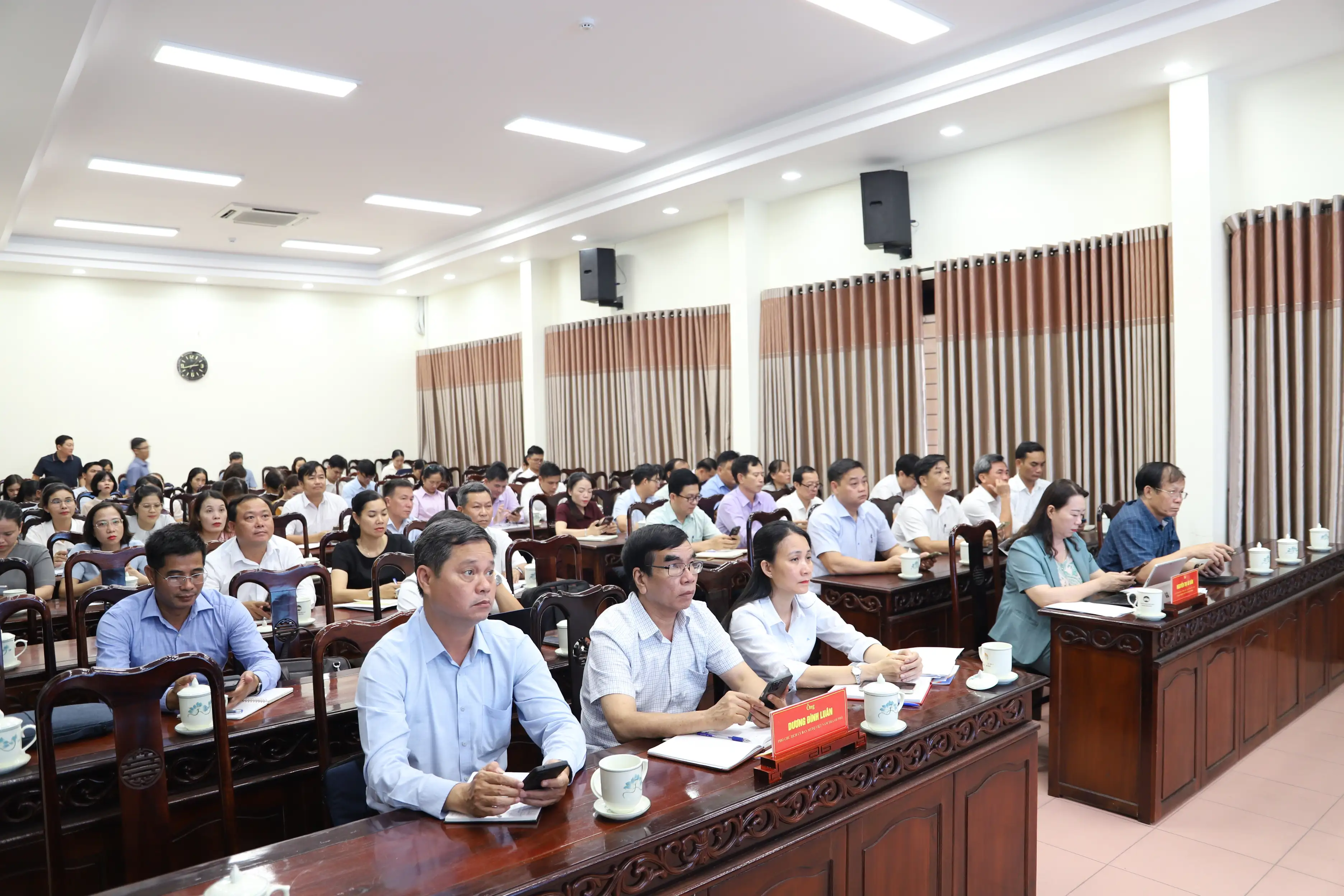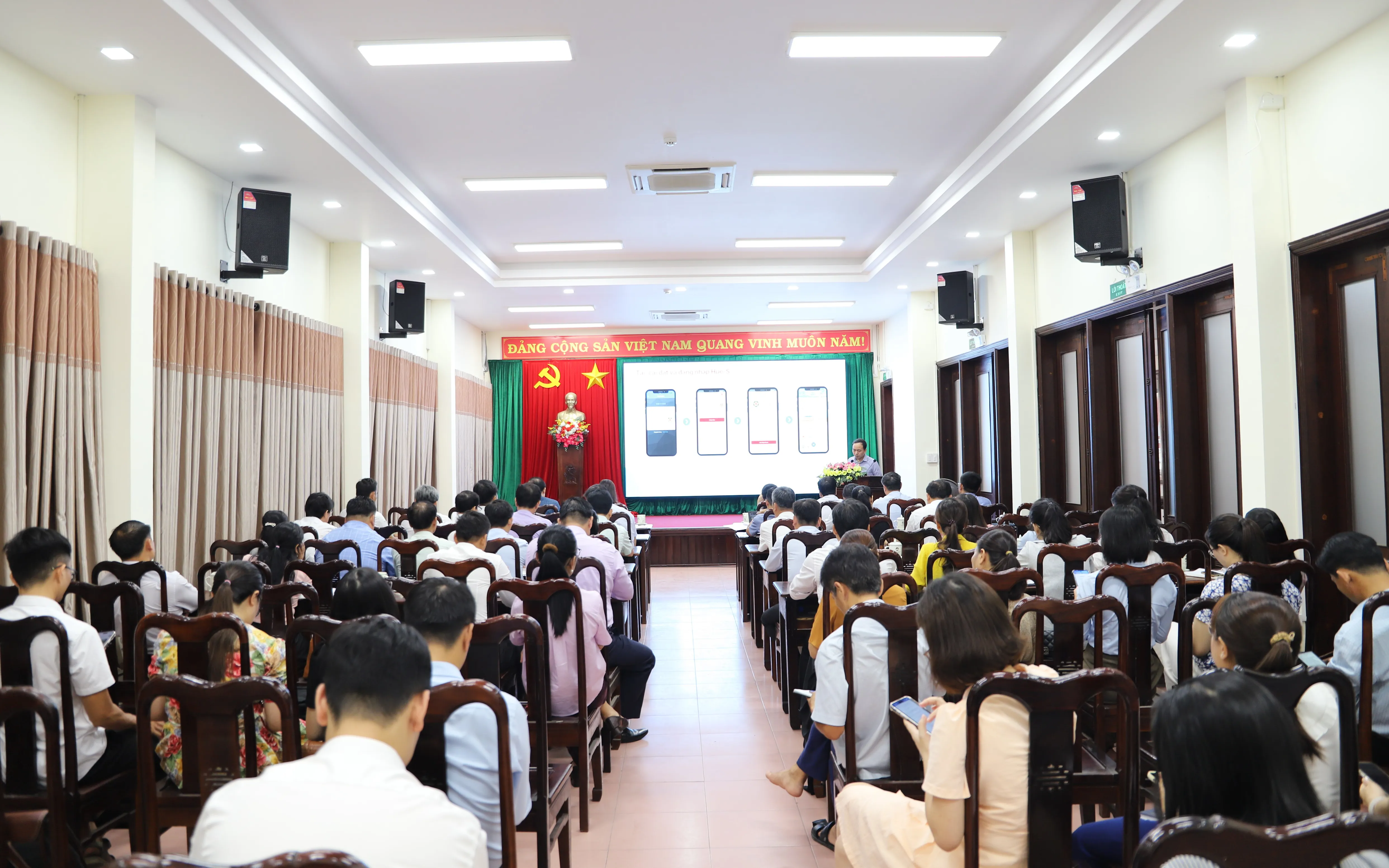 Bên cạnh việc trang bị kiến thức chuyển đổi số và kỹ năng số cơ bản các báo cáo viên Trung tâm HueIOC giới thiệu và hướng dẫn sử dụng nền tảng họp không giấy tờ tích hợp trên Hue-S nhằm phục vụ tổ chức các cuộc họp, hội nghị trong hệ thống MTTQ. Việc ứng dụng nền tảng này góp phần giảm thiểu văn bản giấy, nâng cao tính linh hoạt, minh bạch và hiệu quả trong điều hành, đồng thời phù hợp với xu hướng quản trị hiện đại.