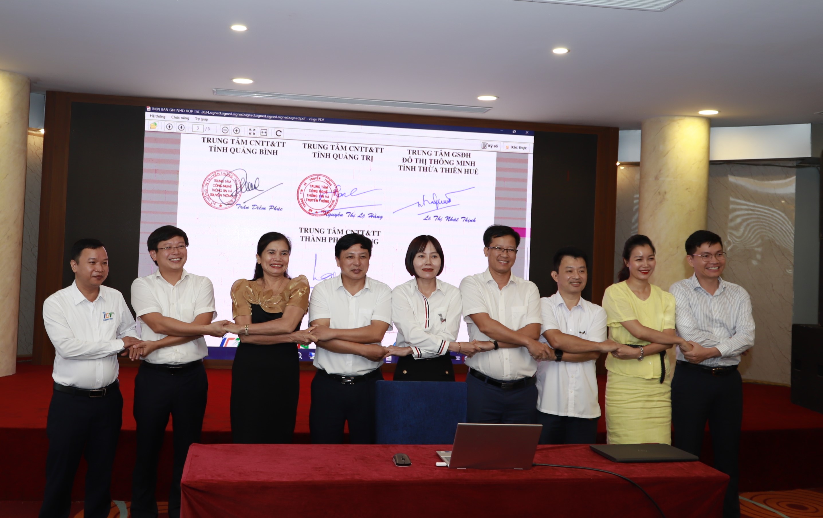 Cũng tại Hội thảo, đại diện lãnh đạo Trung tâm IOC, Trung tâm CNTT&TT các tỉnh Thanh Hóa, Nghệ An, Hà Tĩnh, Quảng Bình, Quảng Trị, Thừa Thiên Huế, Đà Nẵng và Quảng Ngãi đã ký kết biên bản ghi nhớ để thống nhất một số nguyên tắc và các nội dung hợp tác về lĩnh vực CNTT&TT giữa các đơn vị.