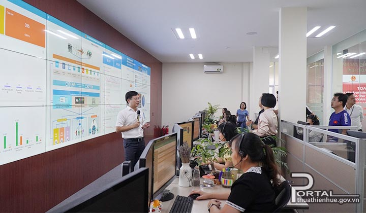 Giám đốc IOC Huế Bùi Hoàng Minh giới thiệu các ứng dụng Hue -S cho các đoàn đến tham quan, học tập kinh nghiệm