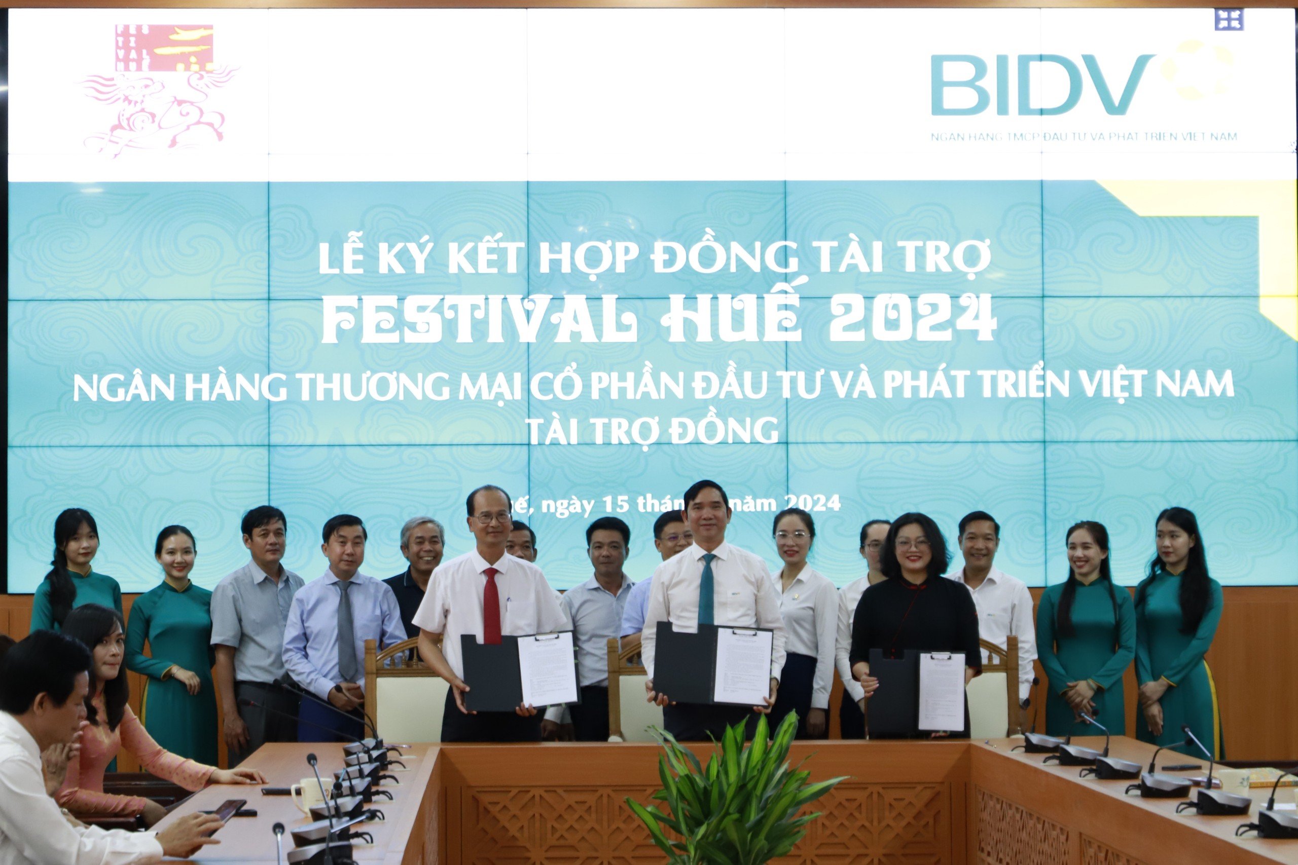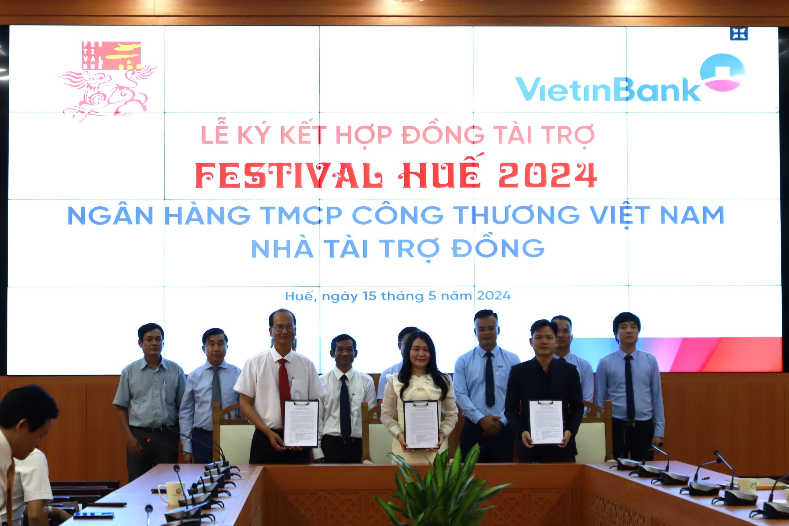 Chiều ngày 15/5/2024, tại Văn phòng UBND tỉnh, BTC Festival Huế tổ chức Lễ ký kết hợp đồng tài trợ với danh vị “Tài trợ Đồng” cùng 3 đơn vị: Ngân hàng TMCP Đầu tư và Phát triển Việt Nam (BIDV), Ngân hàng TMCP Công Thương Việt Nam (VietinBank) và Tập đoàn BRG.