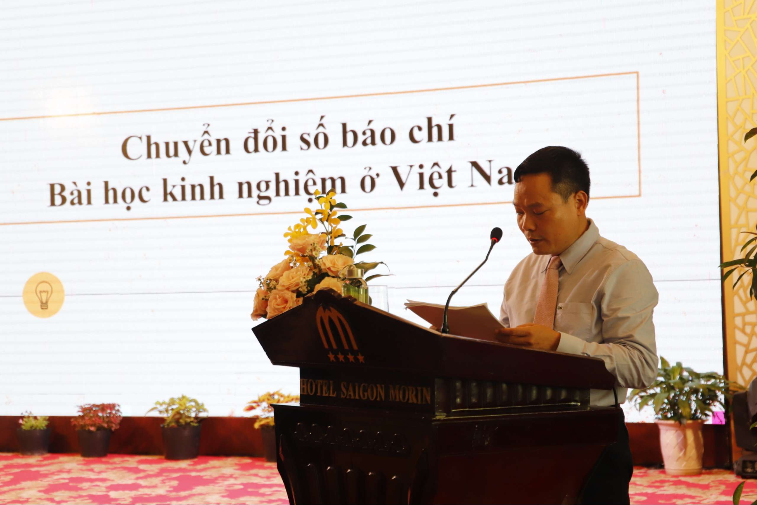 Thông qua chủ đề “Chuyển đổi số báo chí và một số kinh nghiệm ở Việt Nam”, Ông Đặng Khắc Lợi, Phó Cục trưởng Cục Báo chí, Bộ Thông tin và Truyền thông cho biết: “Báo chí cách mạng Việt Nam đang đứng trước các khó khăn, thách thức mới, trong đó có sự ảnh hưởng vừa tích cực vừa có nhiều biến động trước tác động của cuộc cách mạng công nghiệp lần thứ tư và thách thức, cơ hội của tiến trình chuyển đổi số trên thế giới và tiến trình chuyển đổi số quốc gia. Trước tình hình đó, thực hiện chuyển đổi số các cơ quan báo chí truyền thông chính là sự thay đổi về tổng thể và toàn diện kể cả phương thức, cách làm việc, mô hình tổ chức, hoạt động sáng tạo các tác phẩm báo chí, là sự thay đổi quan trọng về nhận thức và thái độ của lãnh đạo, phóng viên, biên tập viên của các cơ quan báo chí.” Qua đó, Ông đã đưa ra 06 giải pháp, nhiệm vụ trọng tâm để triển khai chuyển đổi số báo chí, trong đó có giải pháp tăng cường hợp tác quốc tế, học tập kinh nghiệm của các quốc gia có nền báo chí số phát triển mạnh.