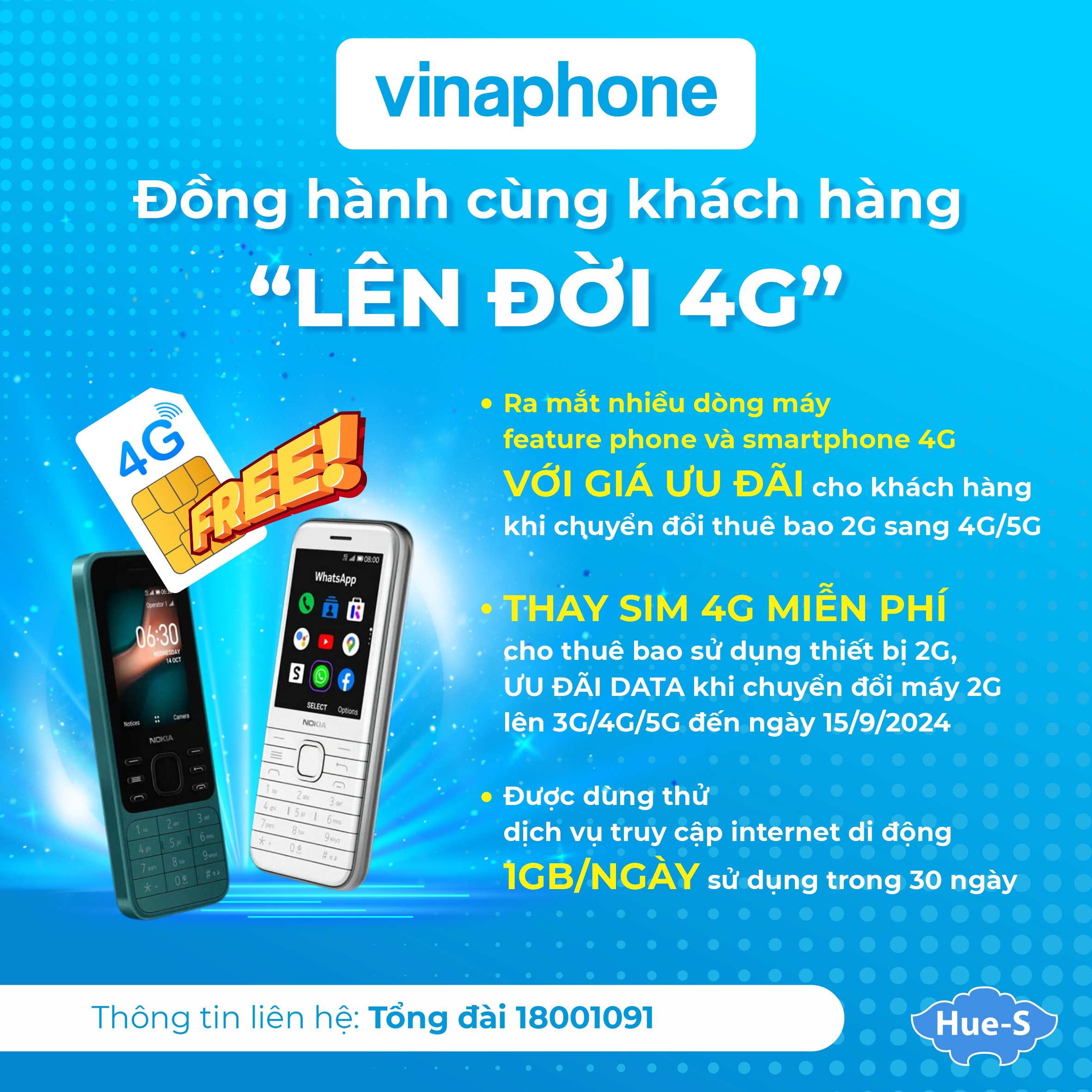Ngoài ra, Vinaphone còn triển khai chương trình thay sim 4G miễn phí cho thuê bao sử dụng thiết bị 2G trên địa bàn, ưu đãi data dành cho khách hàng Vinaphone khi chuyển đổi máy 2G lên 3G/4G/5G đến ngày 15/9/2024. Khách hàng sẽ được trải nghiệm dùng thử dịch vụ truy cập internet di động 1GB/ngày sử dụng trong 30 ngày (hết dung lượng dùng theo gói chính) nhằm khuyến khích khách hàng đang sử dụng điện thoại feature phone 2G thực hiện chuyển đổi lên sử dụng smartphone.