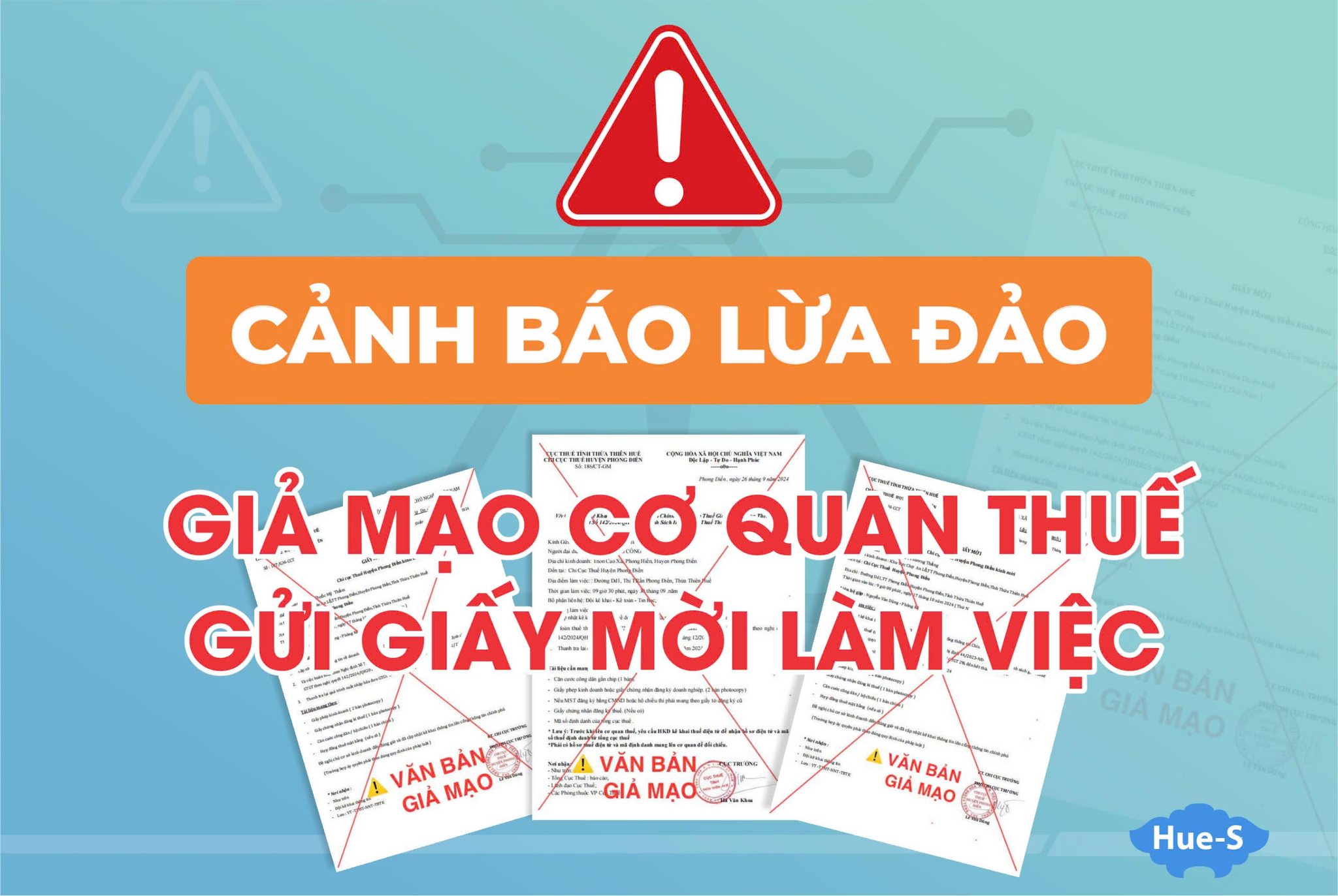 Thời gian gần đây, Cục Thuế tỉnh Thừa Thiên Huế liên tiếp nhận được các phản ánh về việc các đối tượng mạo danh cơ quan Thuế gửi giấy mời người nộp thuế làm việc, kiểm tra, thanh tra… Cục Thuế tỉnh cảnh báo đây là hình thức lừa đảo nhằm mục đính đánh cắp thông tin doanh nghiệp, thông tin cá nhân phục vụ mục đích xấu.