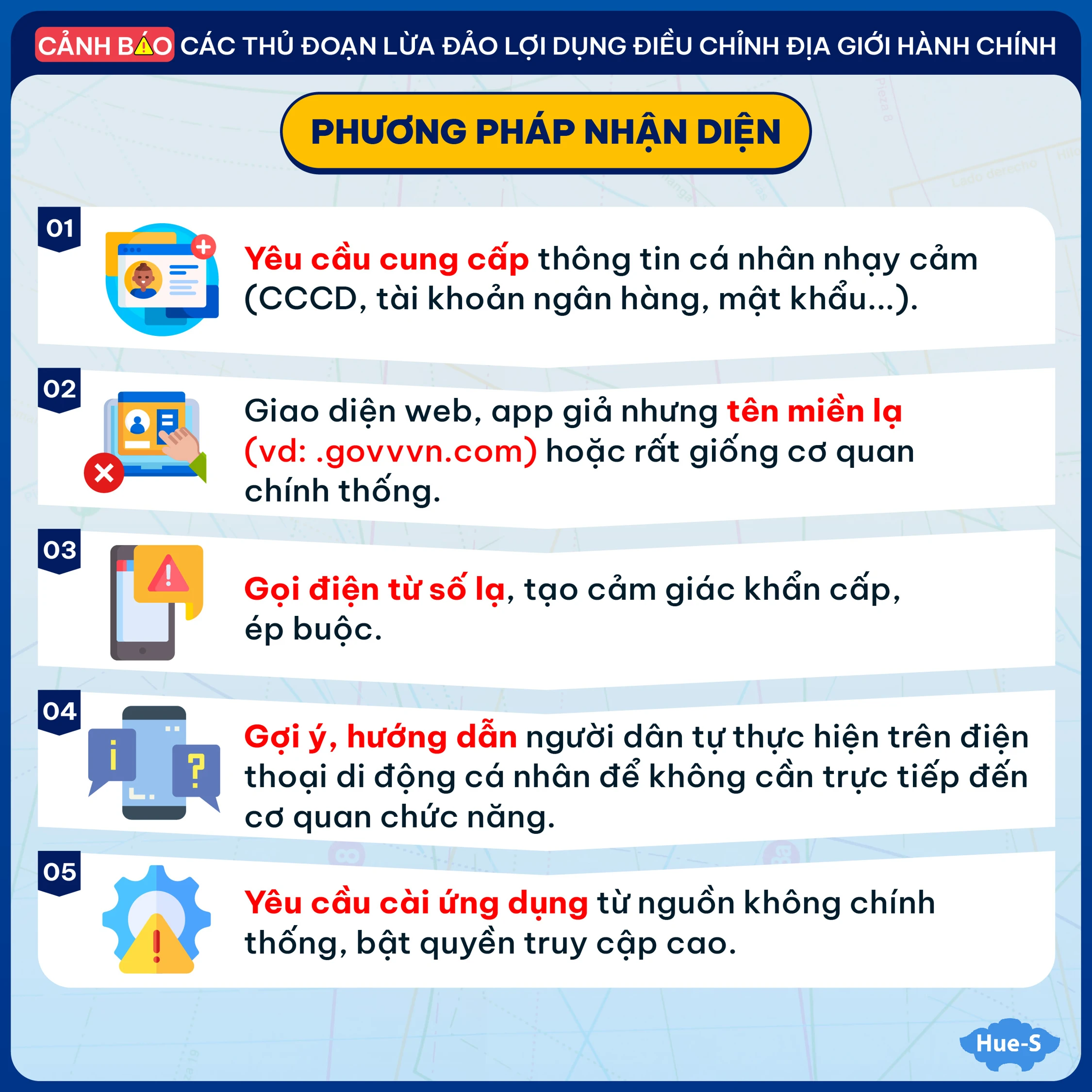 - Yêu cầu cung cấp các thông tin cá nhân nhạy cảm như căn cước công dân, số tài khoản ngân hàng, mật khẩu, mã OTP.