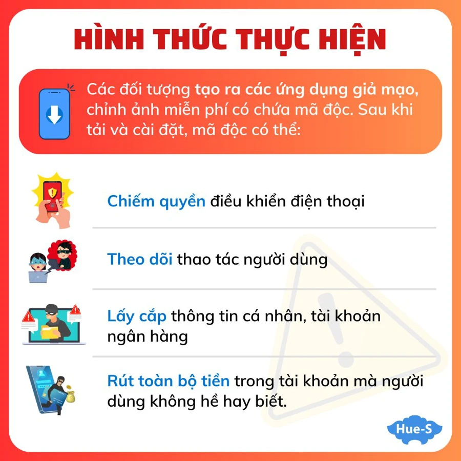 - Các đối tượng tạo ra các ứng dụng chỉnh sửa ảnh miễn phí giả mạo, gắn kèm mã độc và phát tán trên mạng xã hội hoặc các trang web không chính thống.