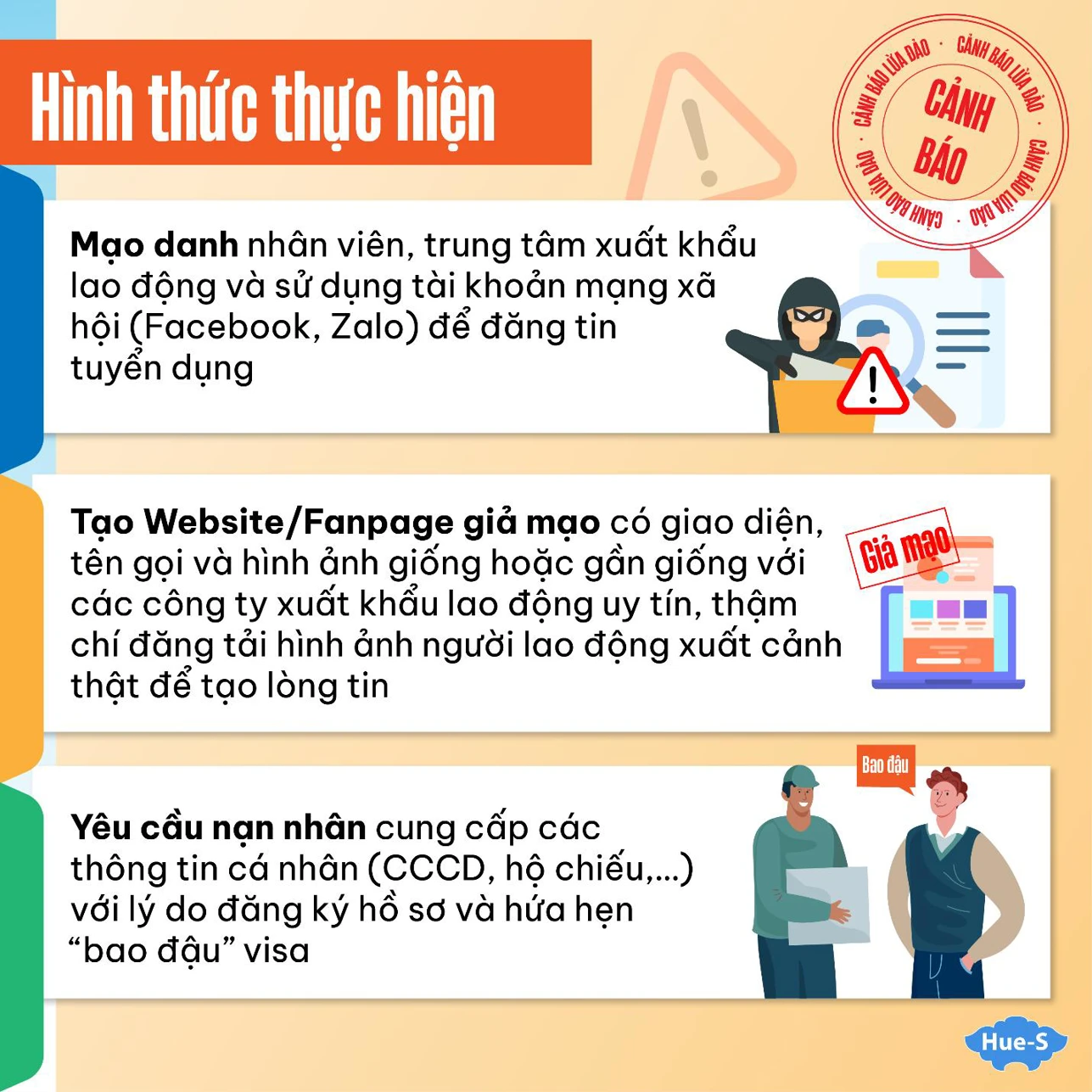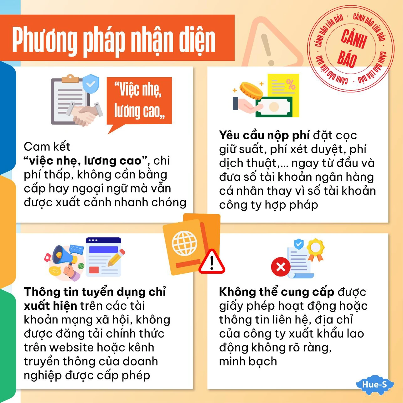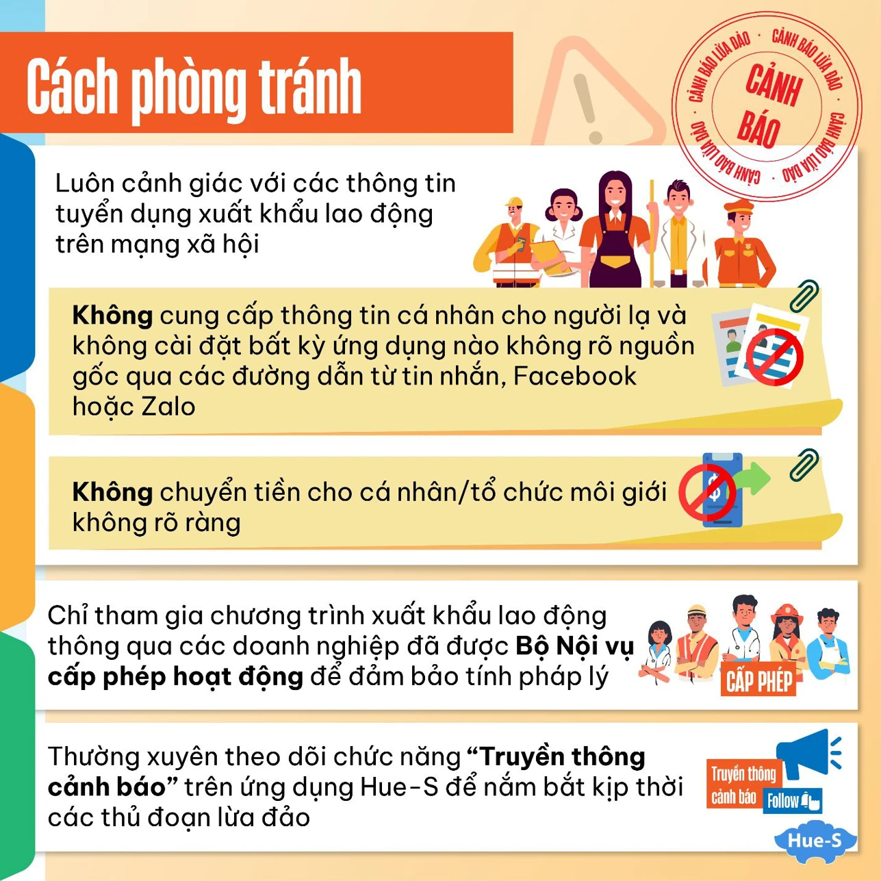 - Luôn cảnh giác với các thông tin tuyển dụng xuất khẩu lao động trên mạng xã hội.