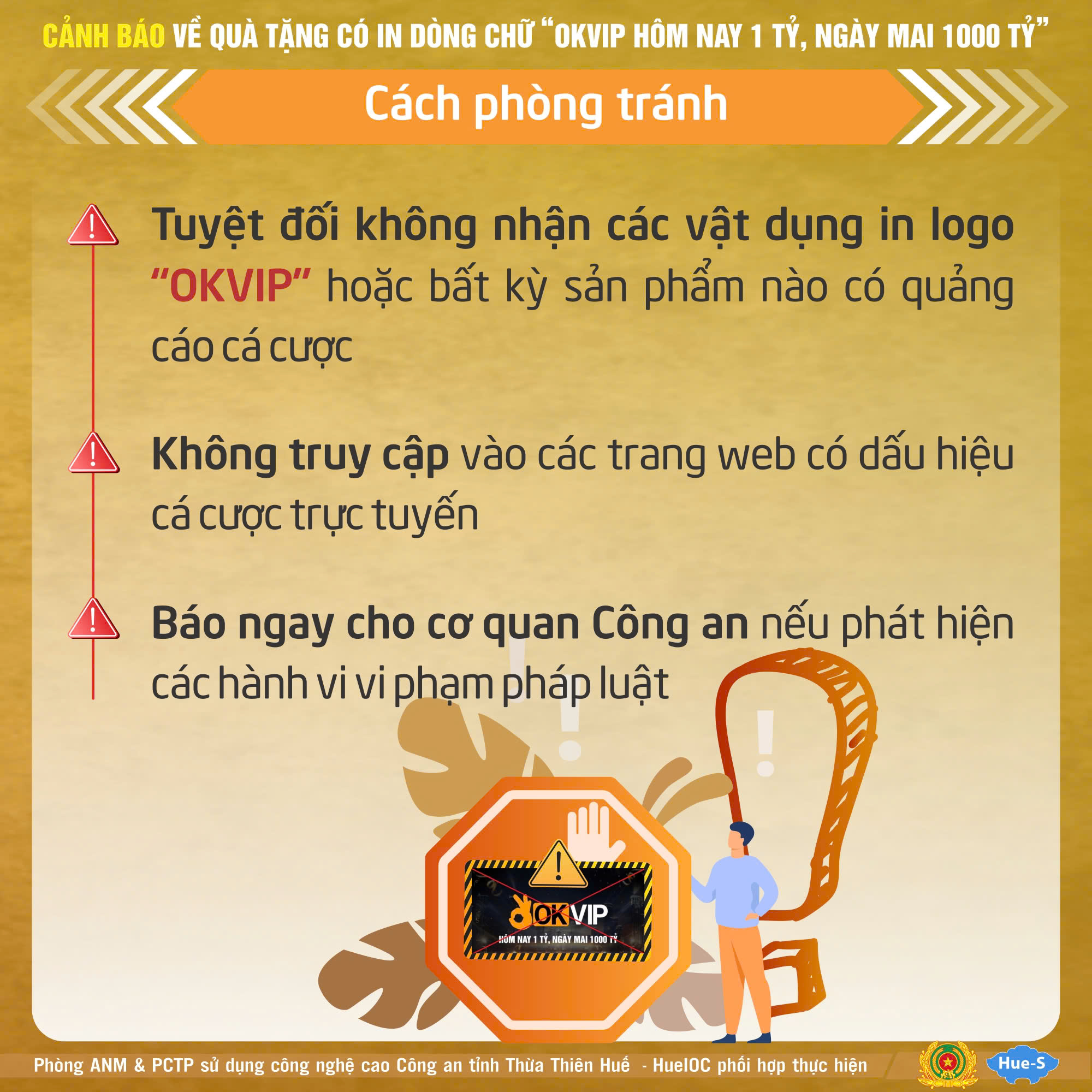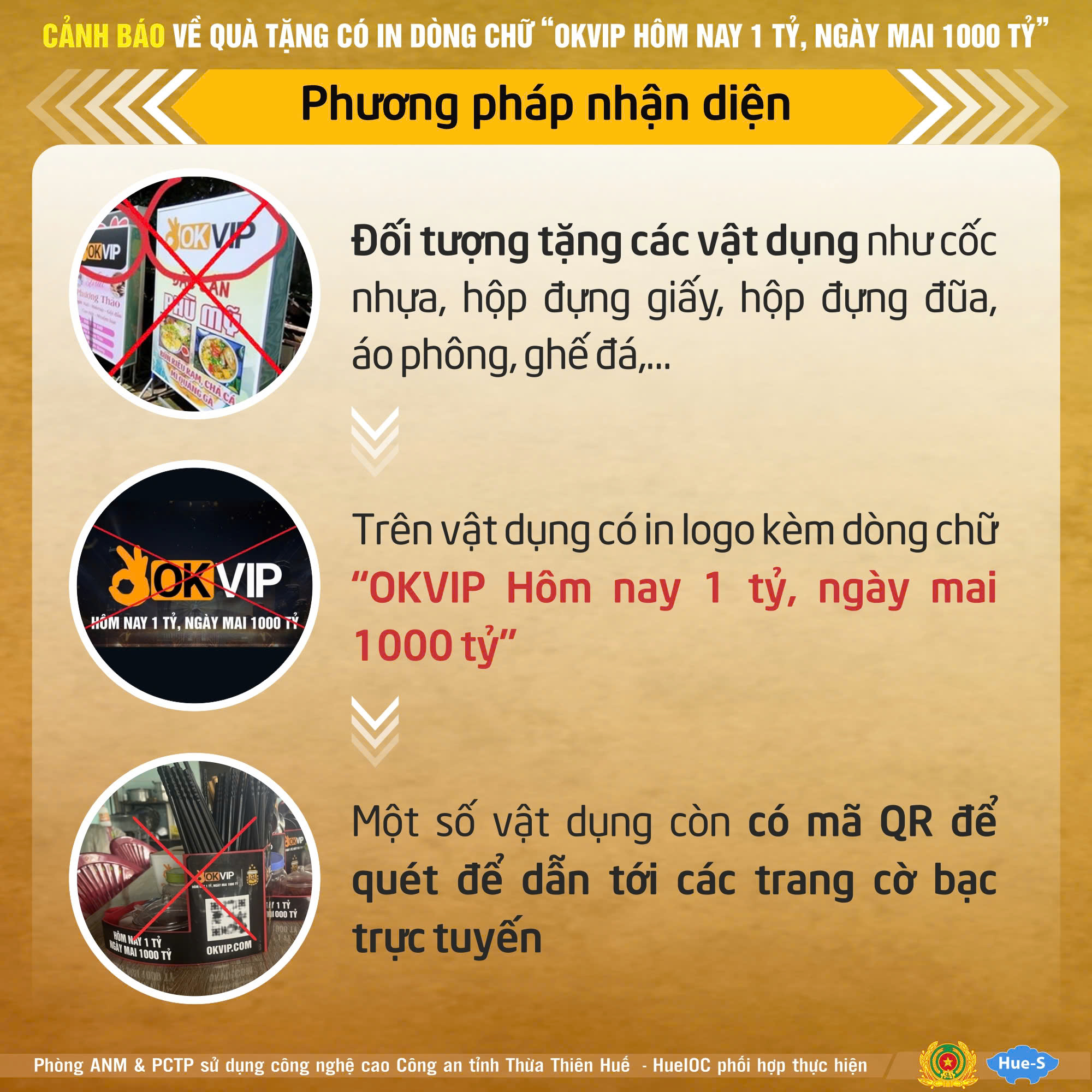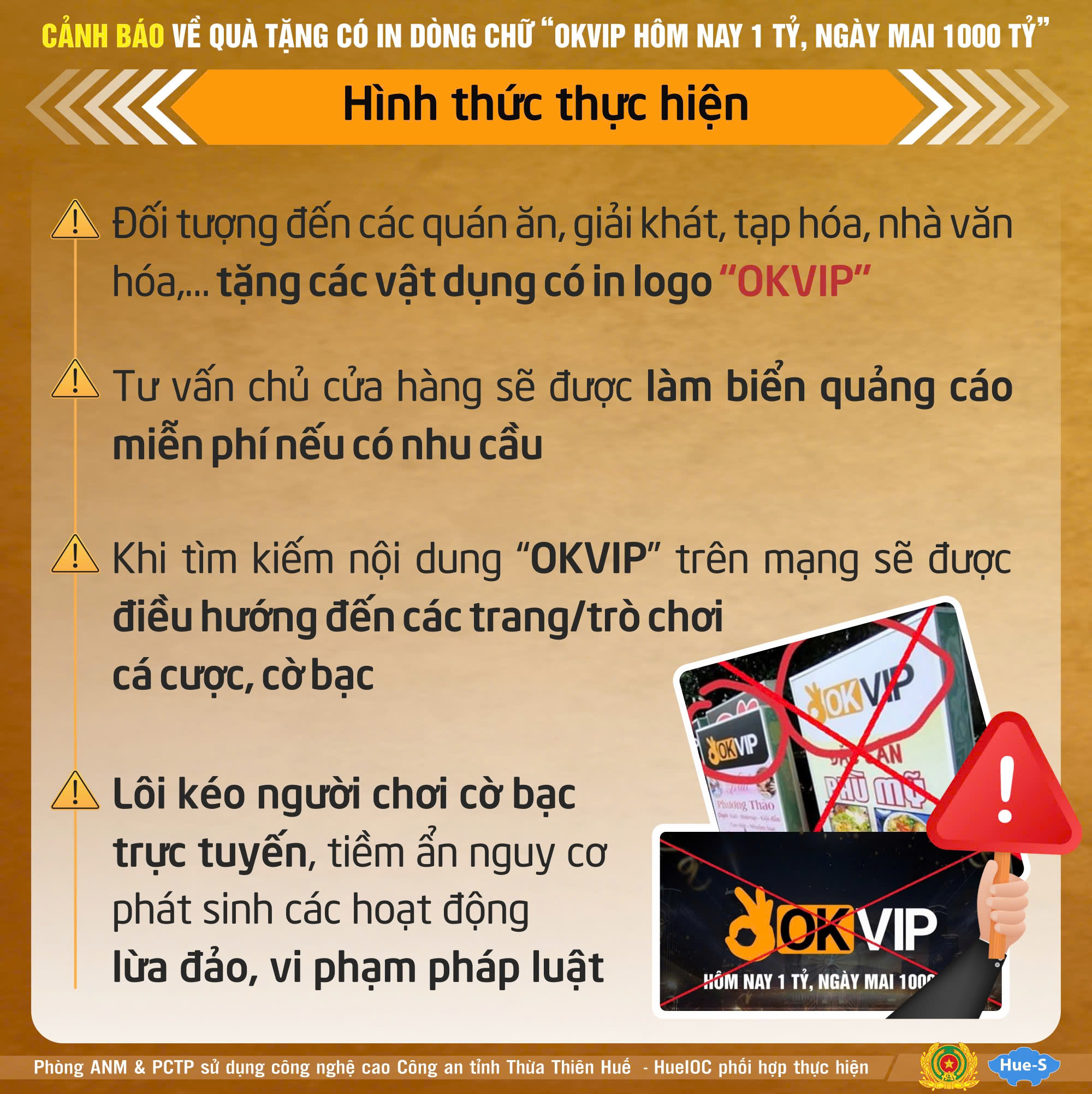 Người dân tuyệt đối không nhận các vật dụng in logo “OKVIP” hoặc bất kỳ sản phẩm nào có quảng cáo cá cược từ người lạ.