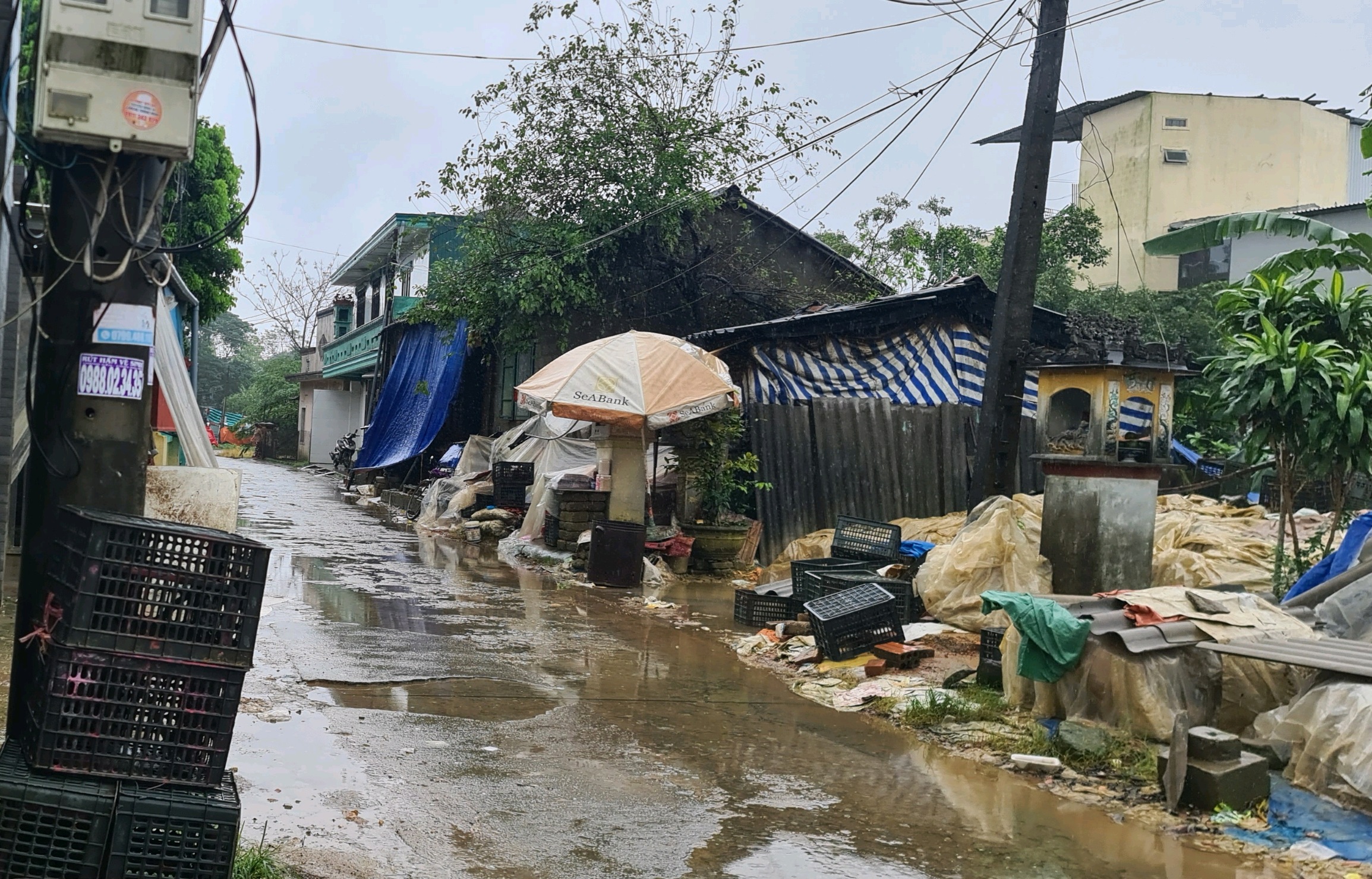 Hàng hóa đặt ngay hai bên đường khiến con đường trở nên nhếch nhác (Ảnh: Hue-S)