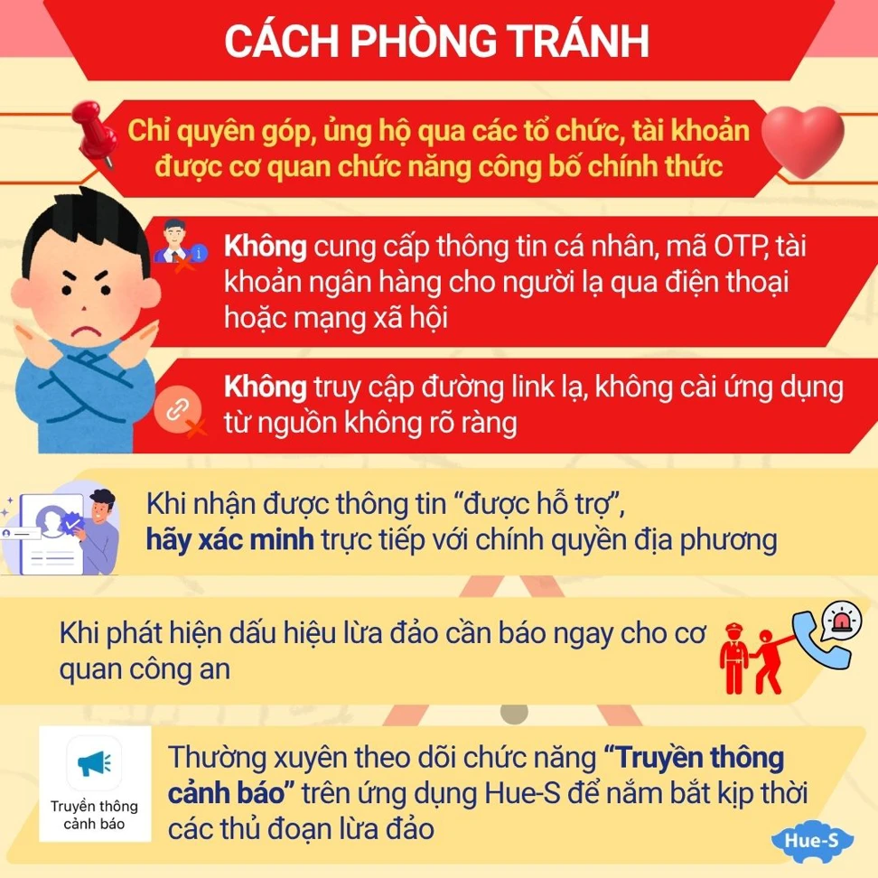 Sau bão lũ, với tinh thần tương thân tương ái, nhiều tổ chức, cá nhân và nhà hảo tâm đã tích cực chung tay hỗ trợ người dân vùng bị thiệt hại sớm ổn định cuộc sống. Tuy nhiên, lợi dụng hoàn cảnh khó khăn và tâm lý cần hỗ trợ khẩn cấp của người dân, các đối tượng xấu đã gia tăng hoạt động lừa đảo với nhiều thủ đoạn tinh vi nhằm chiếm đoạt tài sản.