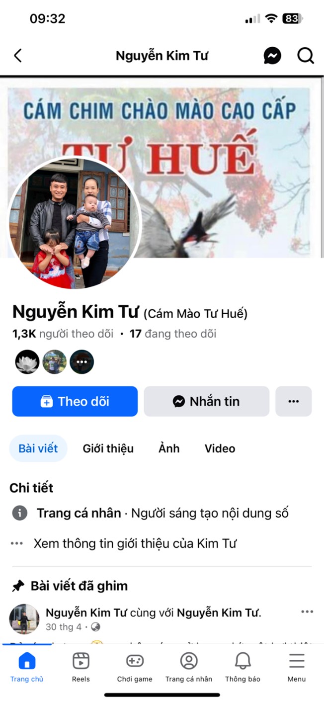 Mới đây, nhận được phản ánh của người dân qua Hue-S về tình trạng trên, Chi cục Kiểm lâm đã chỉ đạo Hạt Kiểm lâm thị xã Hương Trà tổ chức rà soát, kiểm tra xác minh vụ việc và mời đối tượng Ng.K.T (cá nhân liên quan đến tài khoản Facebook đăng bán chim hoang dã) trú tại phường Hương Toàn, Hương Trà, Thừa Thiên Huế làm việc.