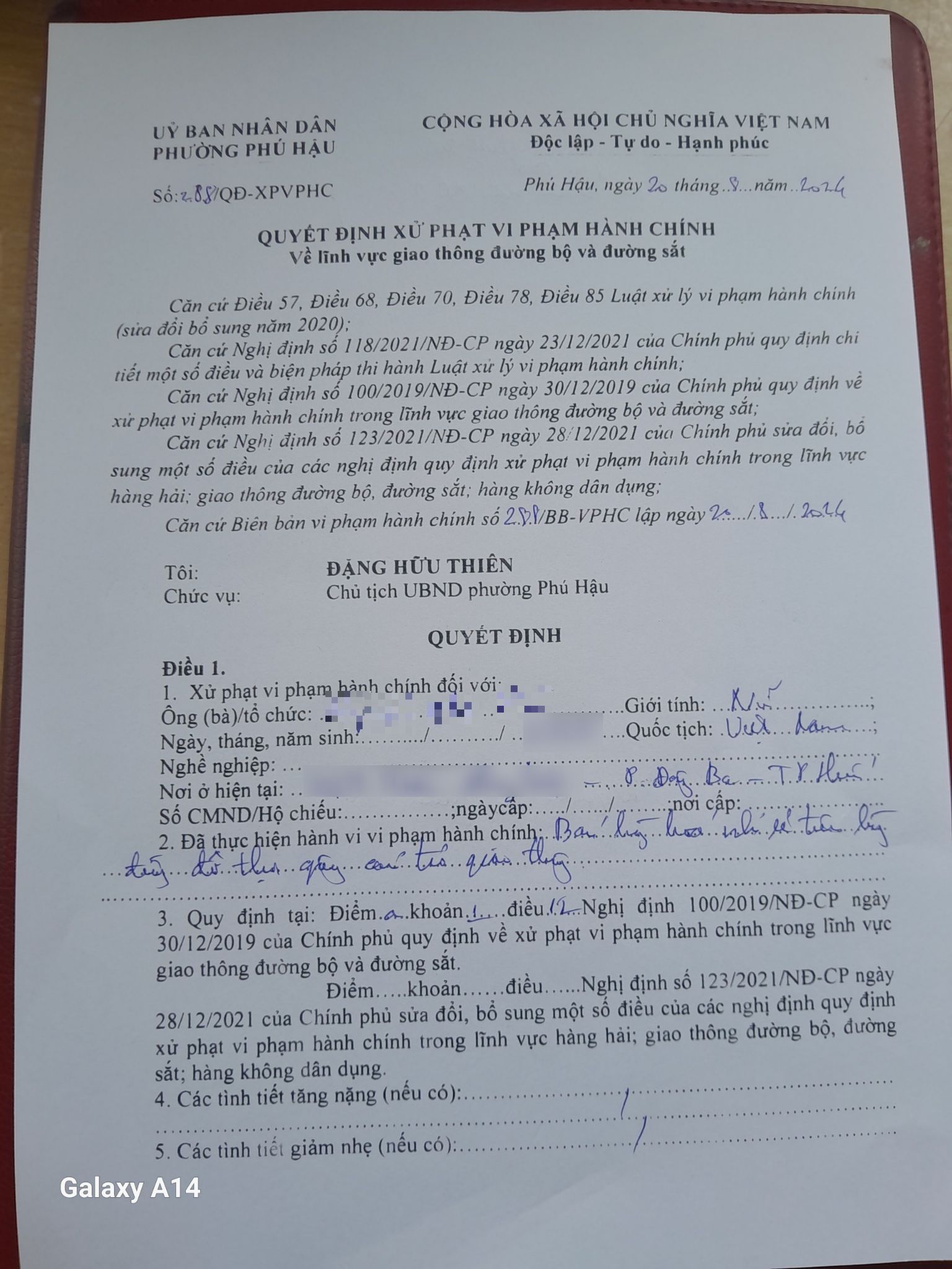 Trường hợp này ngay sau đó đã được lực lượng chức năng phường Phú Hậu kiểm tra xử lý và tiến hành lập biên bản, ra quyết định xử phạt đối với 02 trường hợp vi phạm về hành vi buôn bán hàng hóa nhỏ lẻ trên lòng đường đô thị gây cản trở giao thông. Mỗi trường hợp bị xử phạt hành chính 200.000 đồng.